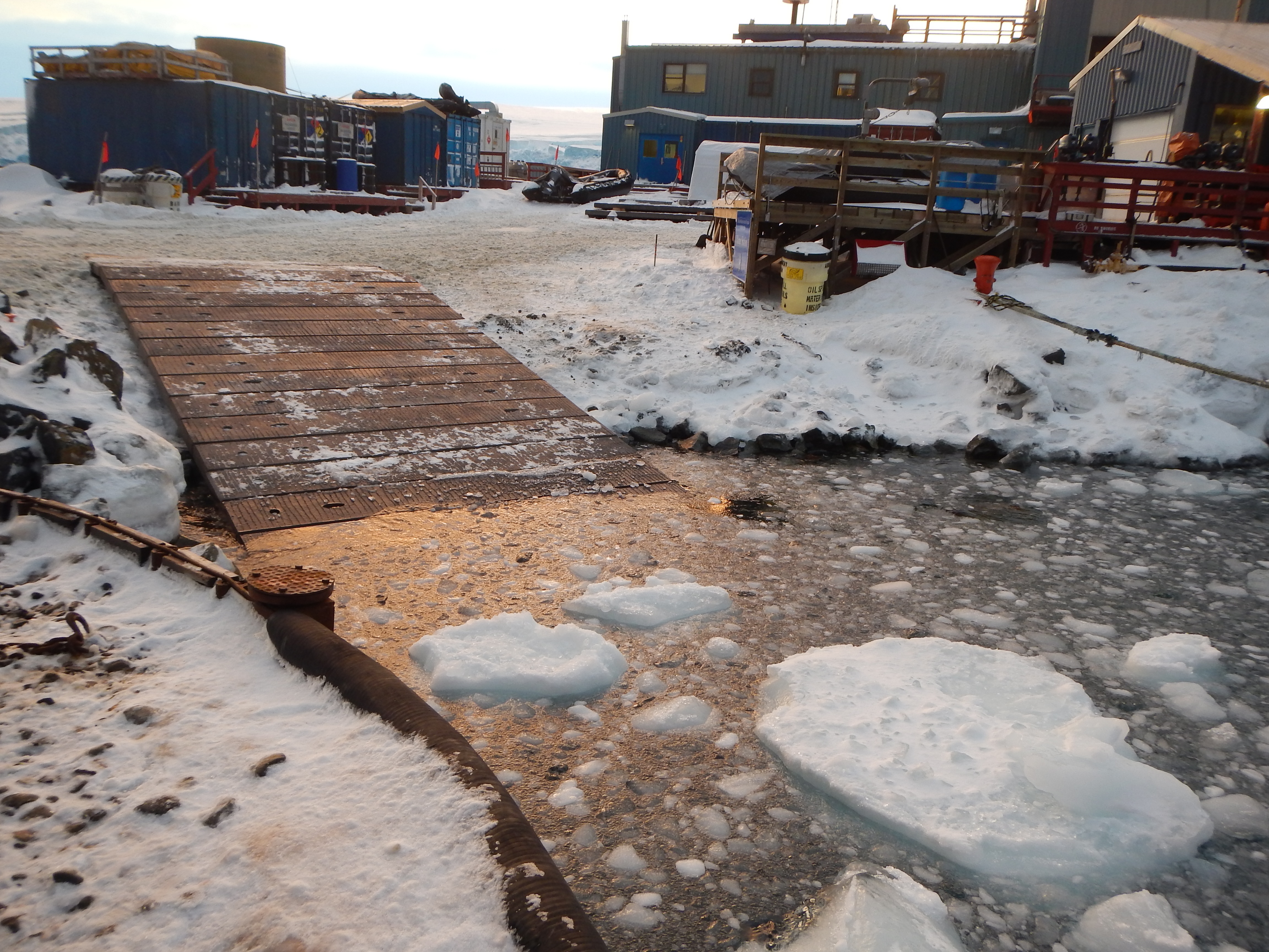 This brand new boat ramp is designed to make it easier to launch the zodiac boats. Palmer Station, Antarctica.