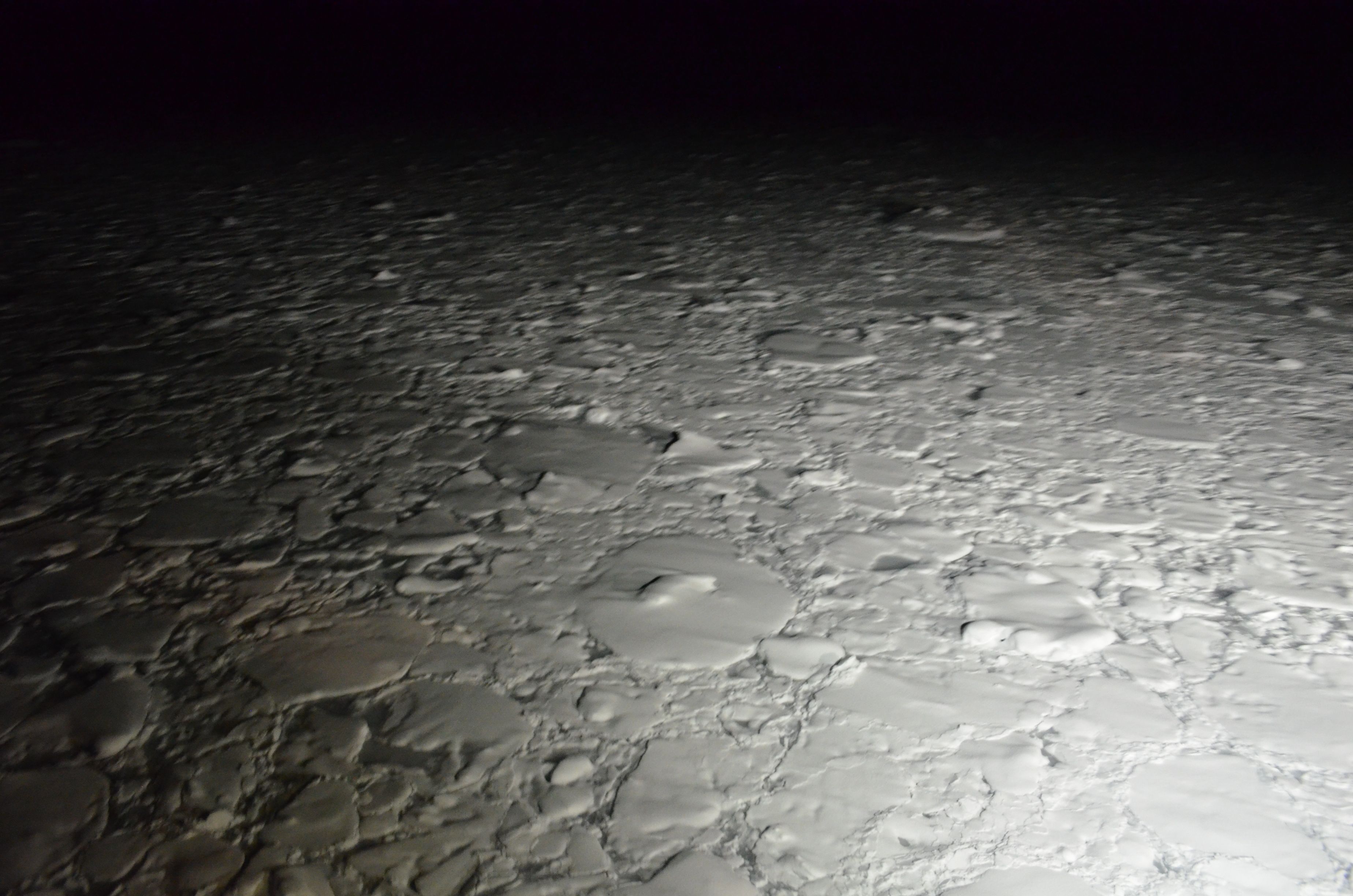 Paula Dell: "This is what our ship had to travel through. There was a continuous clang noise against the bow as we broke through the ice." Gerlache Strait, Antarctica.