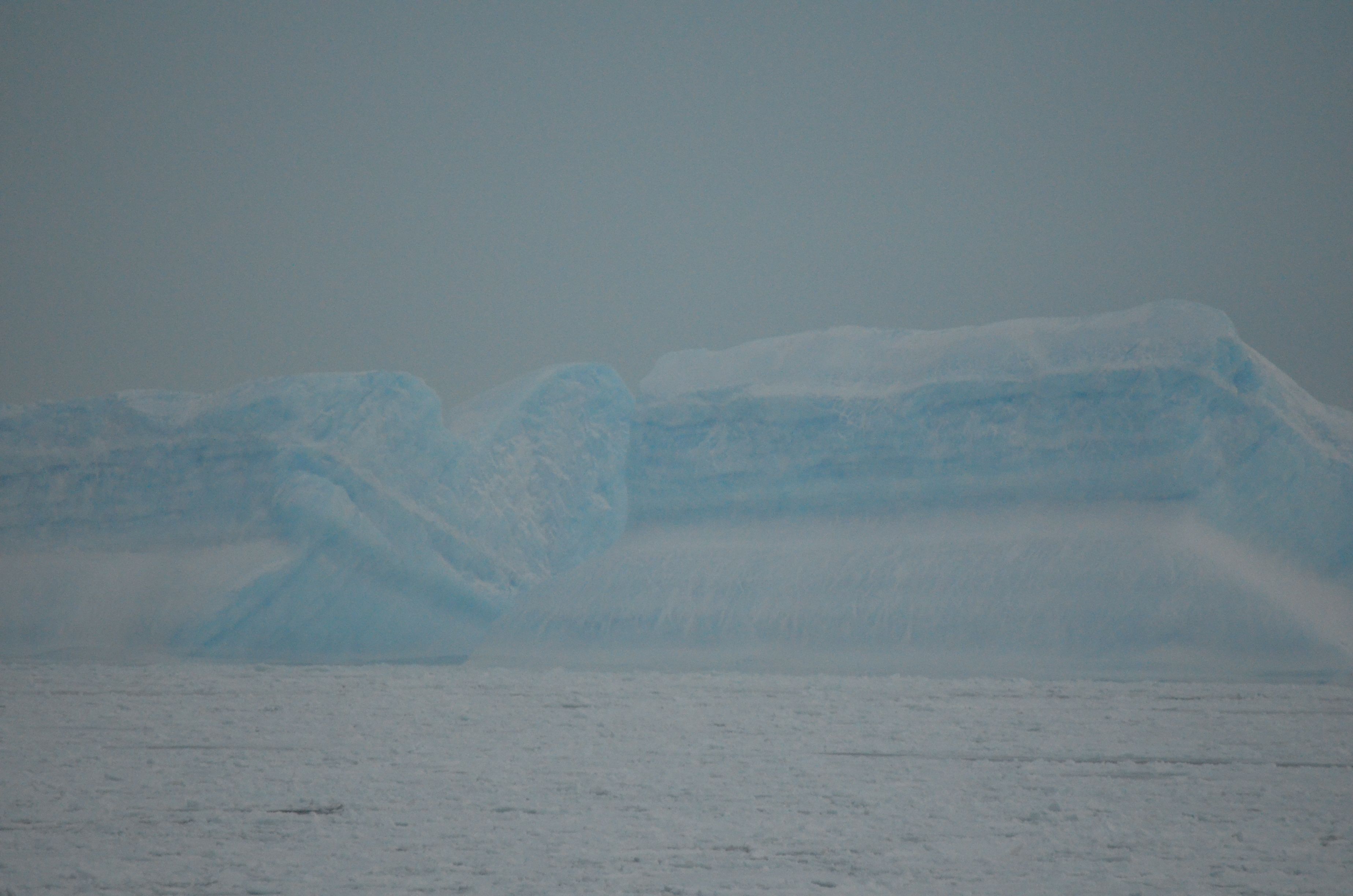 An iceberg and sea ice in the Lemaire Channel. West Antarctic Peninsula region, Antarctica.