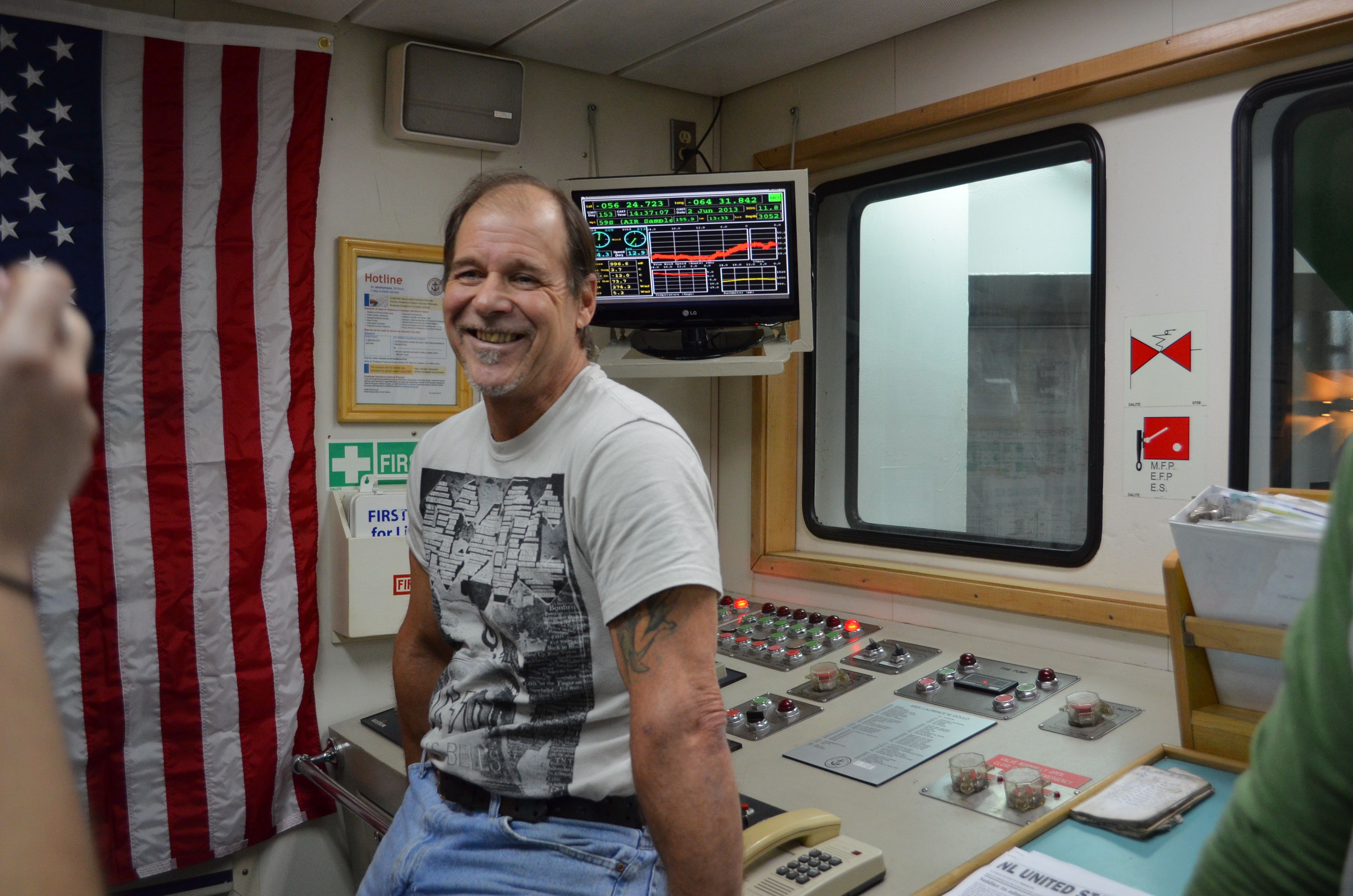 Paula Dell: "Mike, the chief engineer, has been working the Laurence M. Gould for almost a decade." Aboard the RV Laurence M. Gould icebreaker.