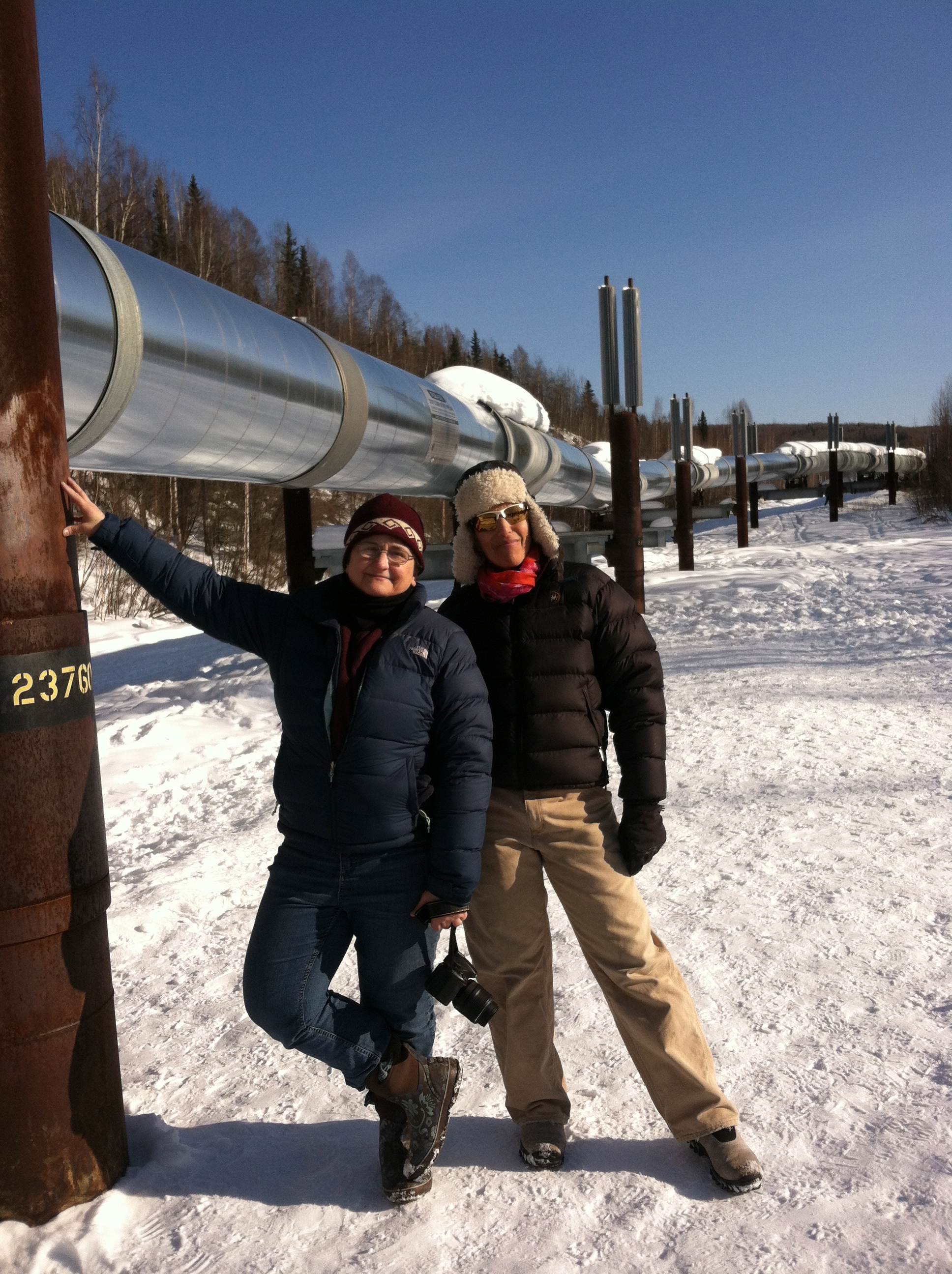 Paula Dell and Susy Ellison at the Trans-Alaska Pipeline in Fox, Alaska.
