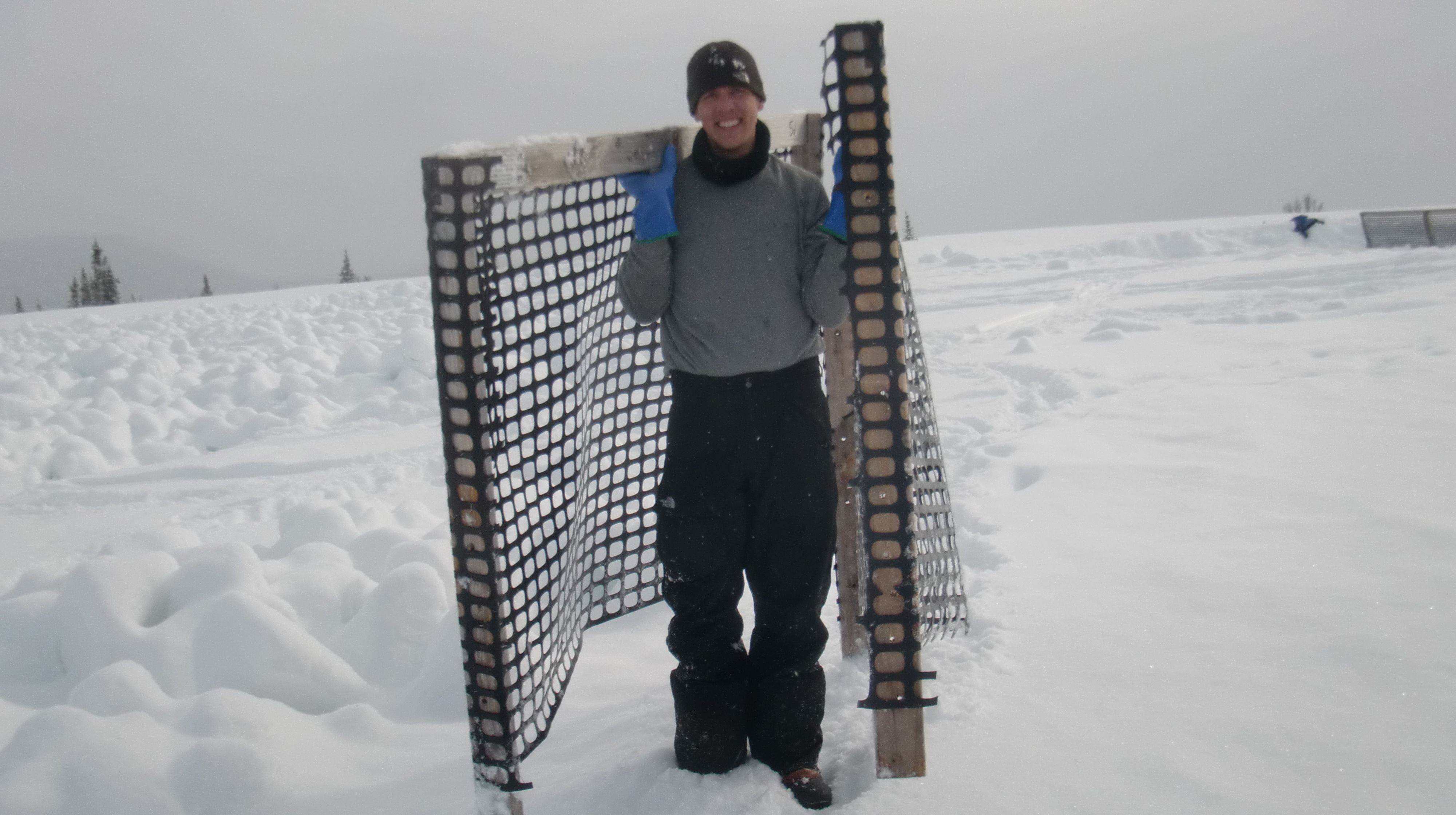 John Krapek carries away a pair of fences for storage until next fall. At the CiPEHR site, near Healy, Alaska.