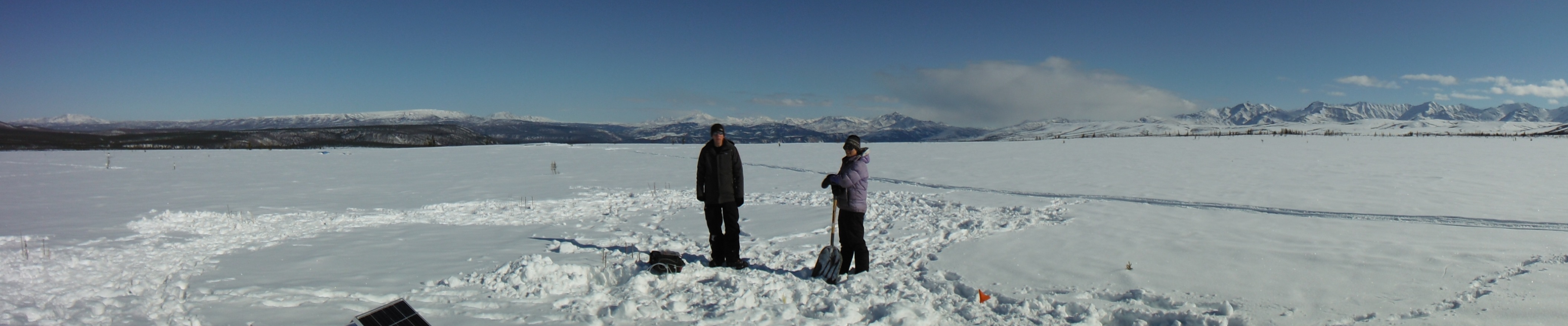 A panoramic view looking Northeast of the University of Florida CiPEHR (Carbon in Permafrost Experimental Heating Research) site. At the CiPEHR site, near Healy, Alaska.
