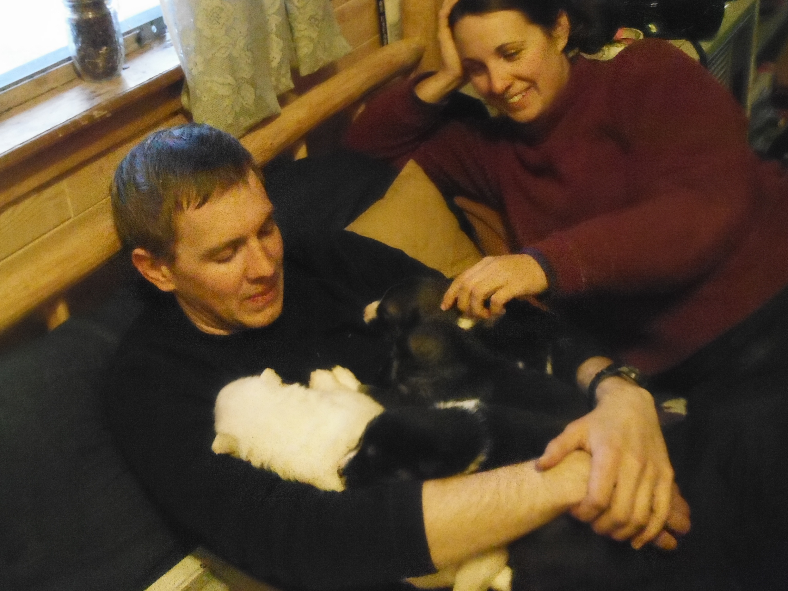 Tom Lane: "These puppies (all female)were born 3 weeks ago. It helps them to socialize by spending time with people. They barely have their eyes open and just want to sleep." Stampede Road, Healy, Alaska.