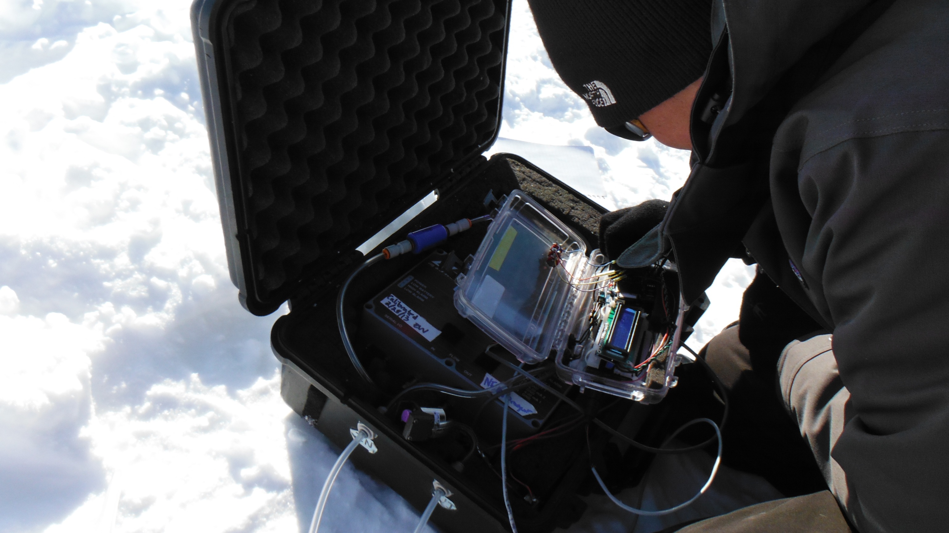 John Krapek troubleshoots the Li-COR data collection apparatus at the off-plot site. At the CiPEHR site, near Healy, Alaska.