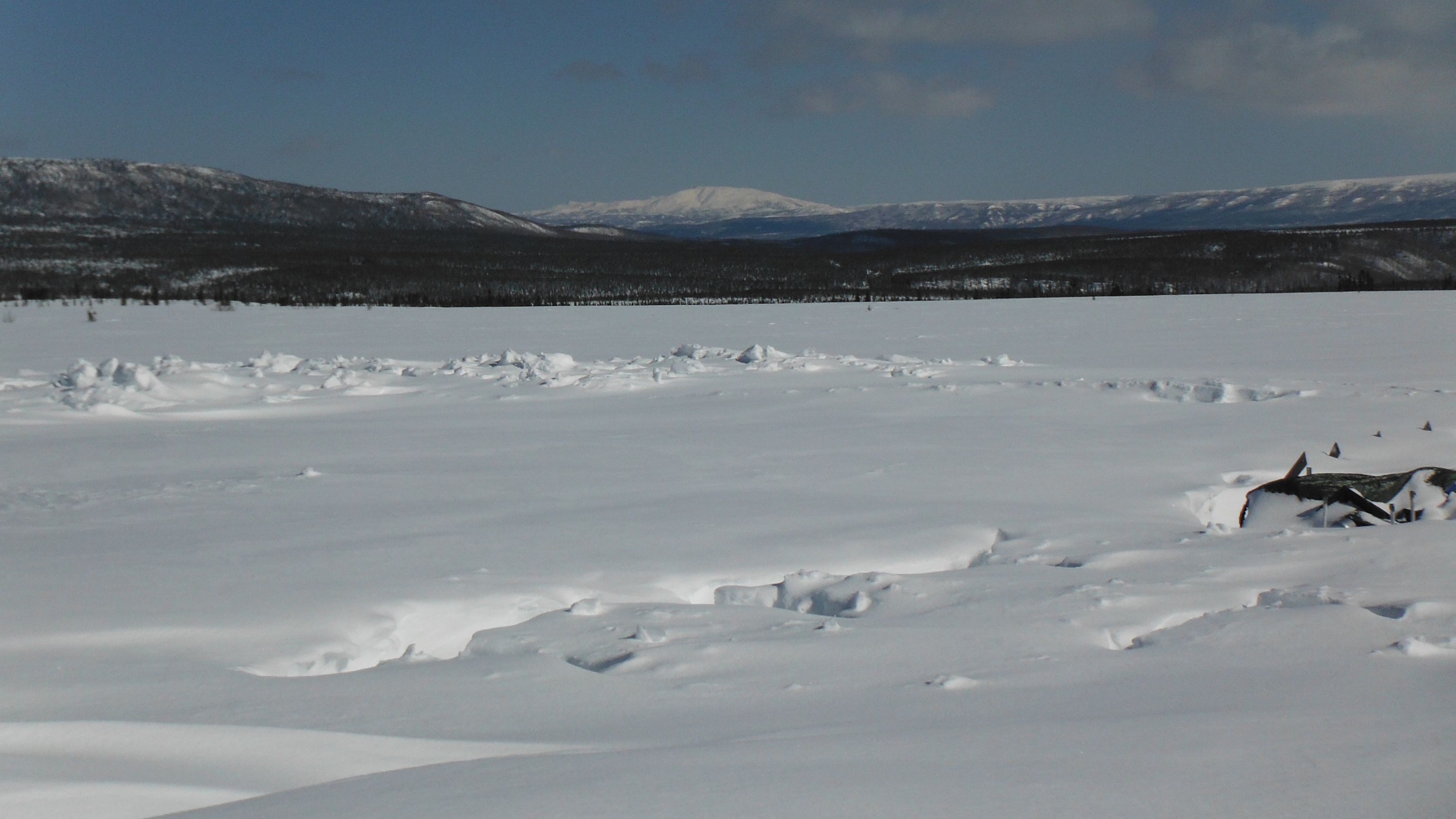 Plot B of the on-site plots after a small snowstorm. The boardwalks have to be re-shoveled. At the CiPEHR site, near Healy, Alaska.