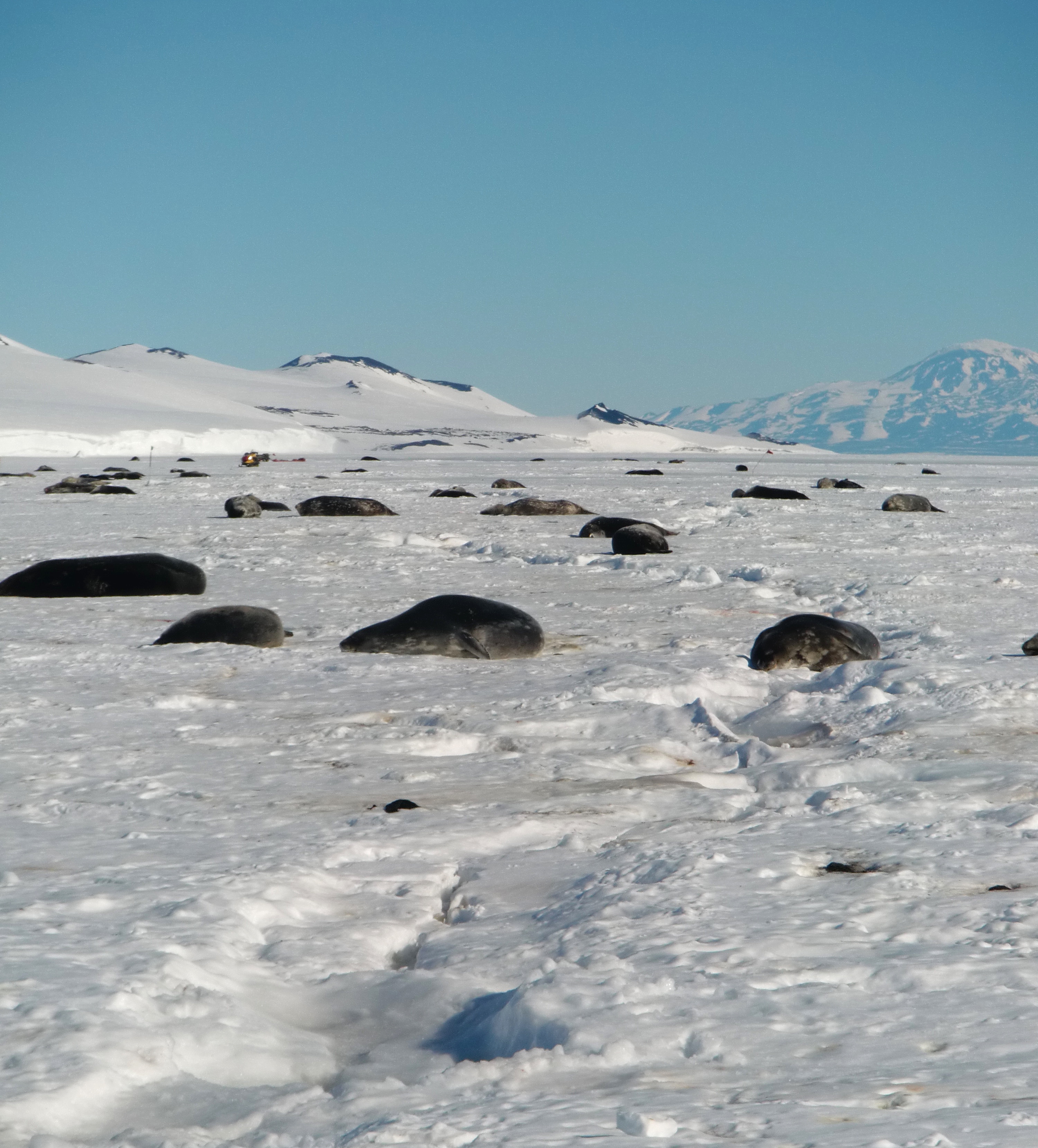 A Weddell seal colony at Hutton Cliffs, Antarctica.
