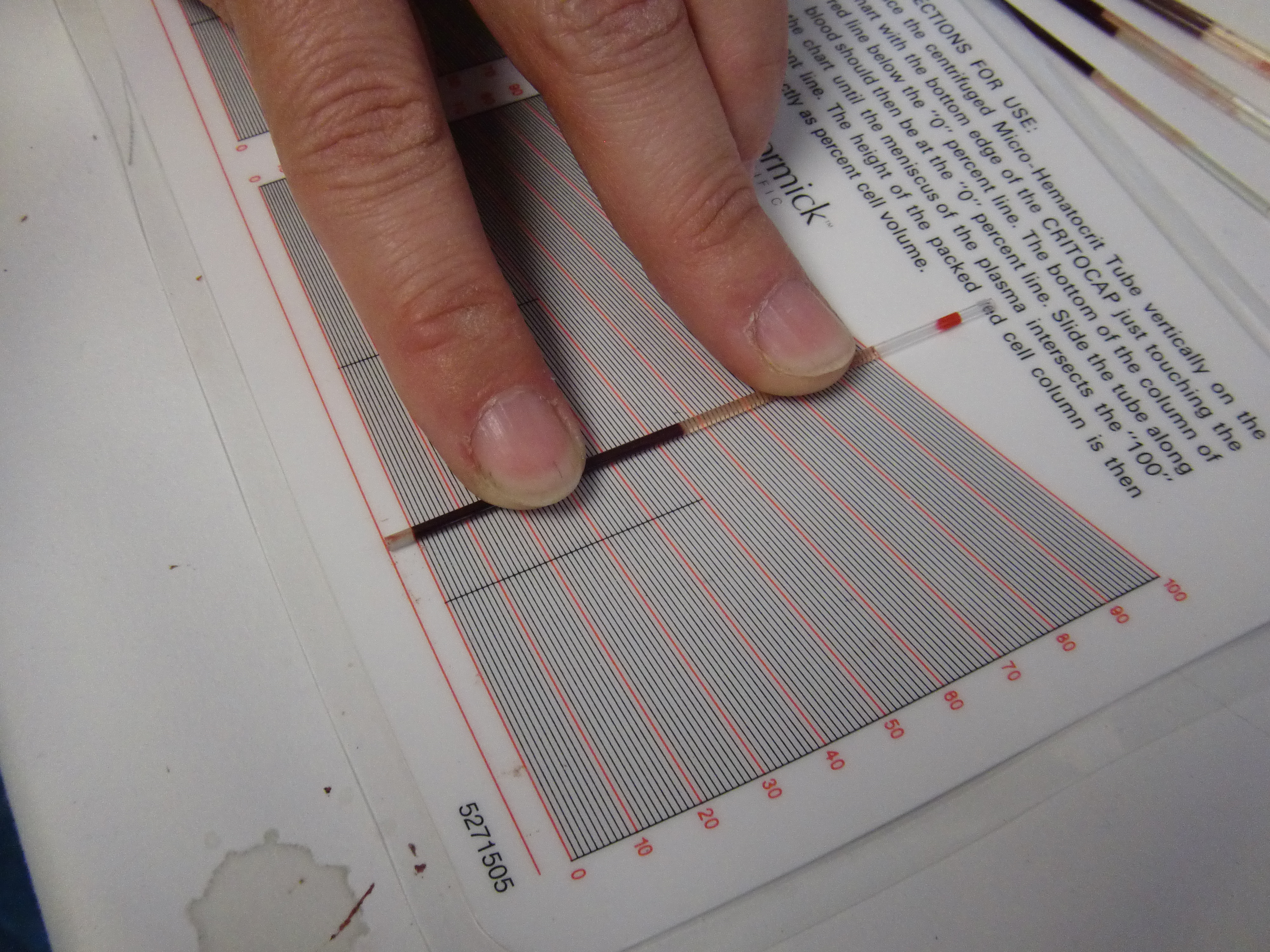 This device reads the hematocrit levels (the volume of red blood cells compared to the total blood volume) of the seal. This particular Weddell seal had a hematocrit of about 56. McMurdo Station, Antarctica.