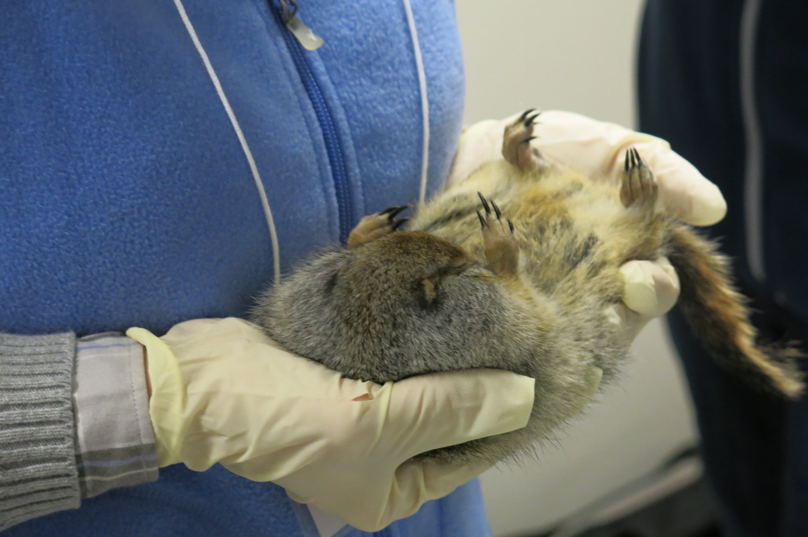 Jeanette Moore holds a hibernating ground squirrel at the Museum of the North in Fairbanks, Alaska.