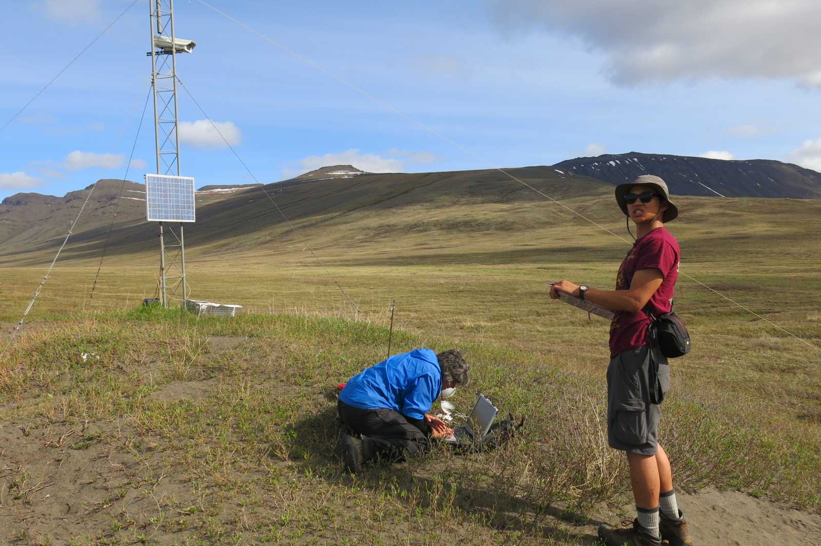 Victo Zhang and Jeanette Moore download weather station data. Toolik Field Station, Alaska.