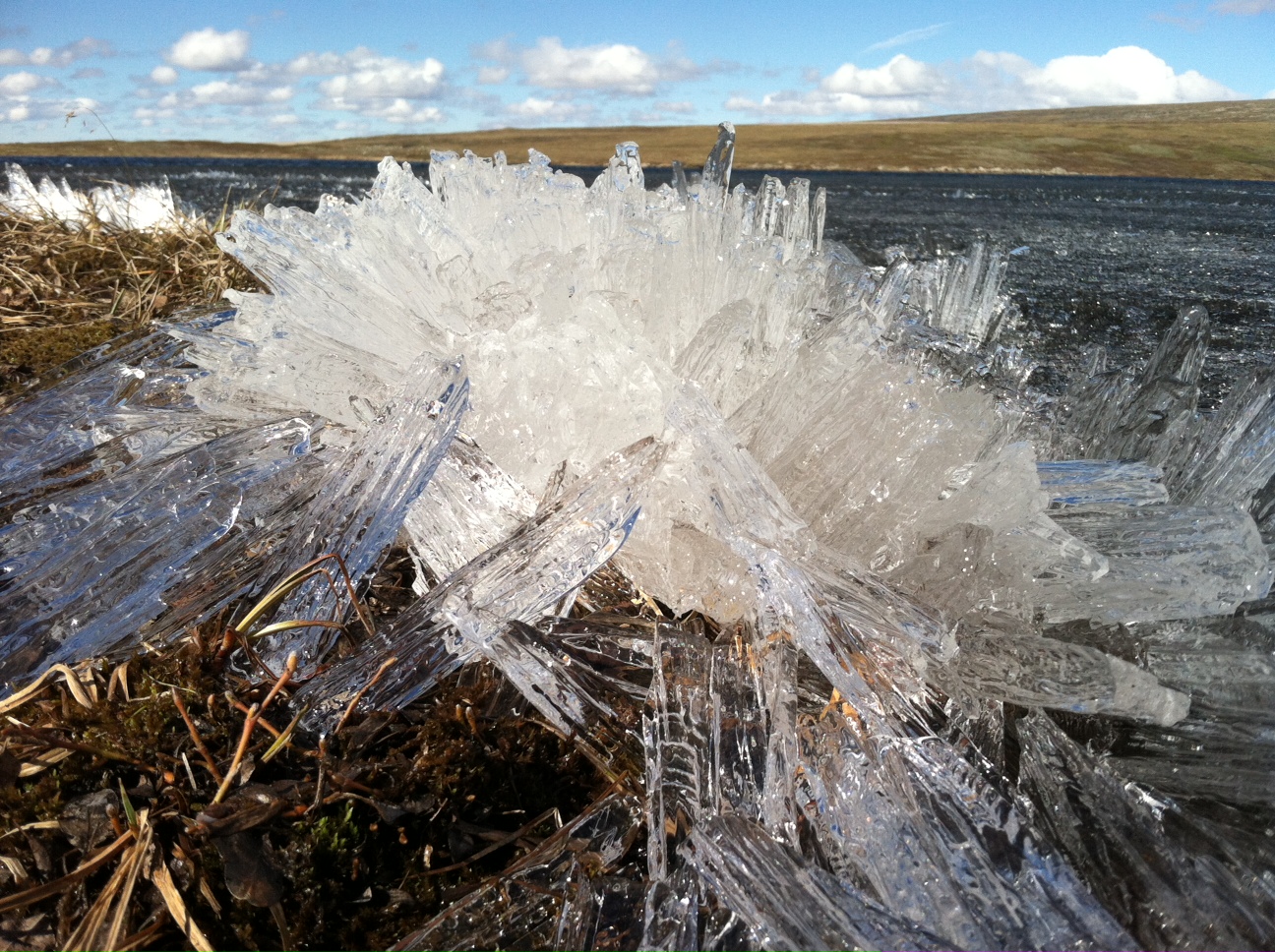 Candle ice piles up on the shore of Toolik Lake at Toolik Field Station, Alaska.
