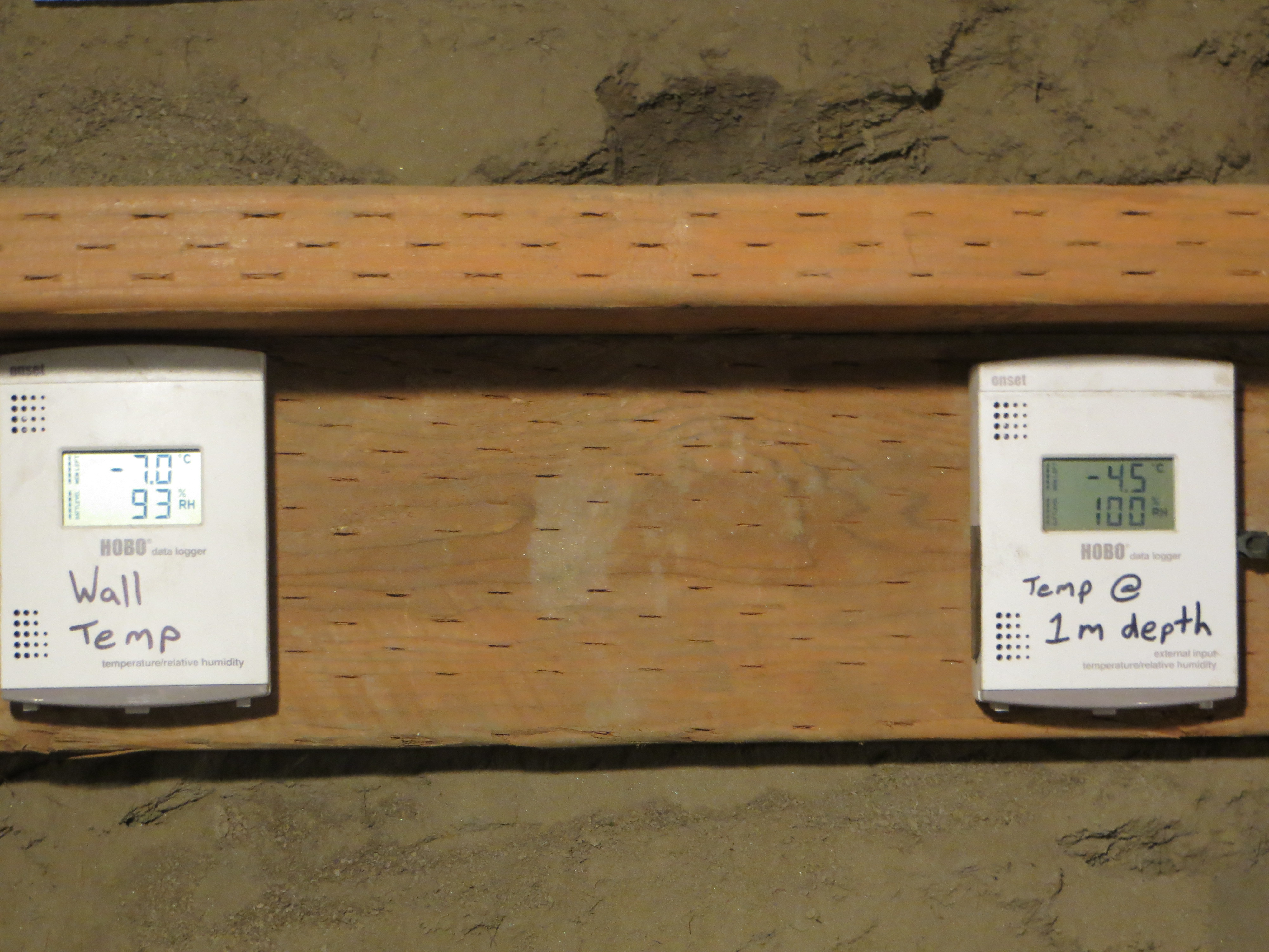 The temperature inside the CRREL Permafrost Tunnel at the wall and at 1 meter depth. Fox, Alaska.