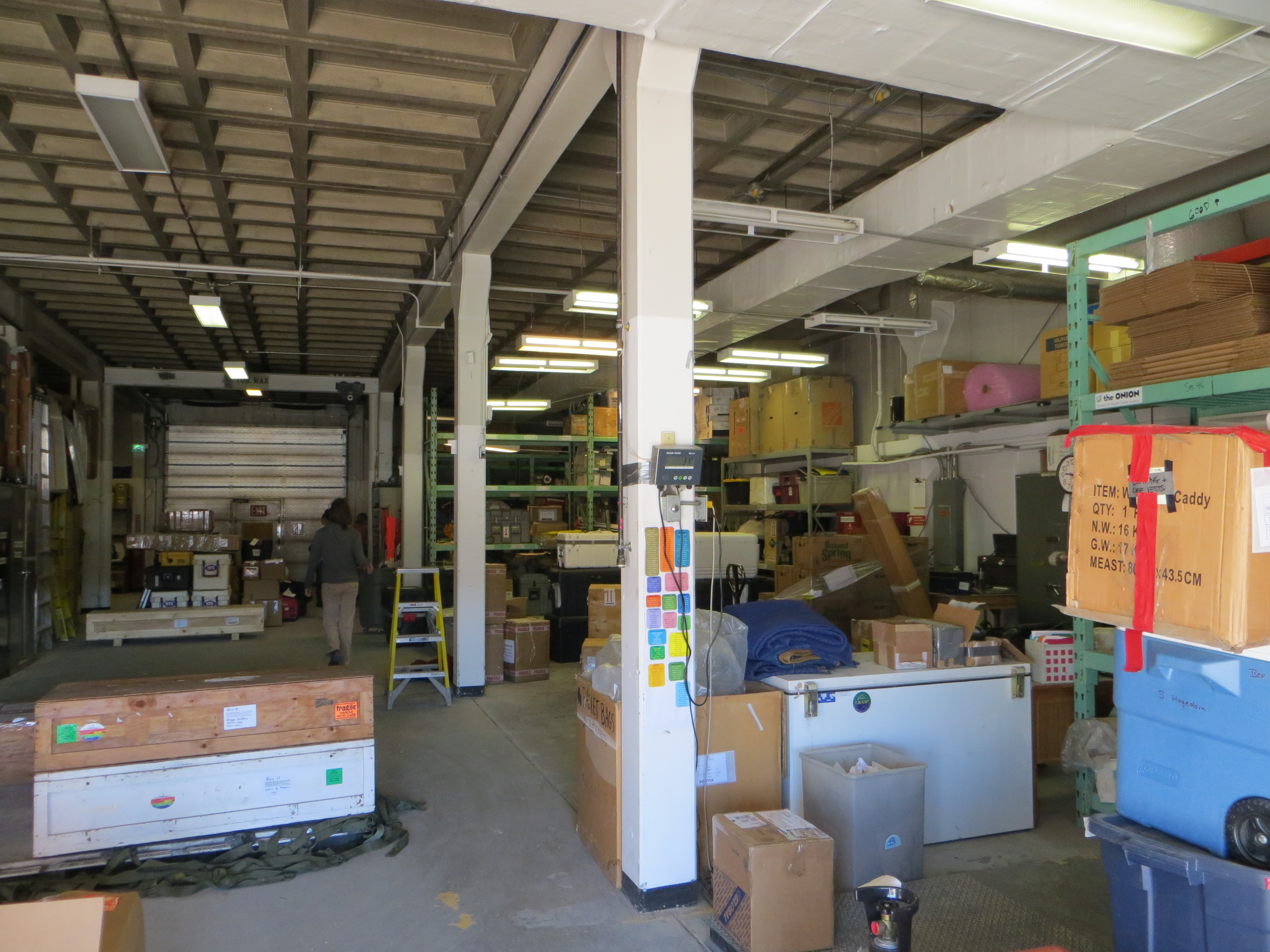 Inside the warehouse where all research/field items are stored. This is where the team gets all of their camping supplies and where the items shipped from Dartmouth are stored. Kangerlussuaq, Greenland.