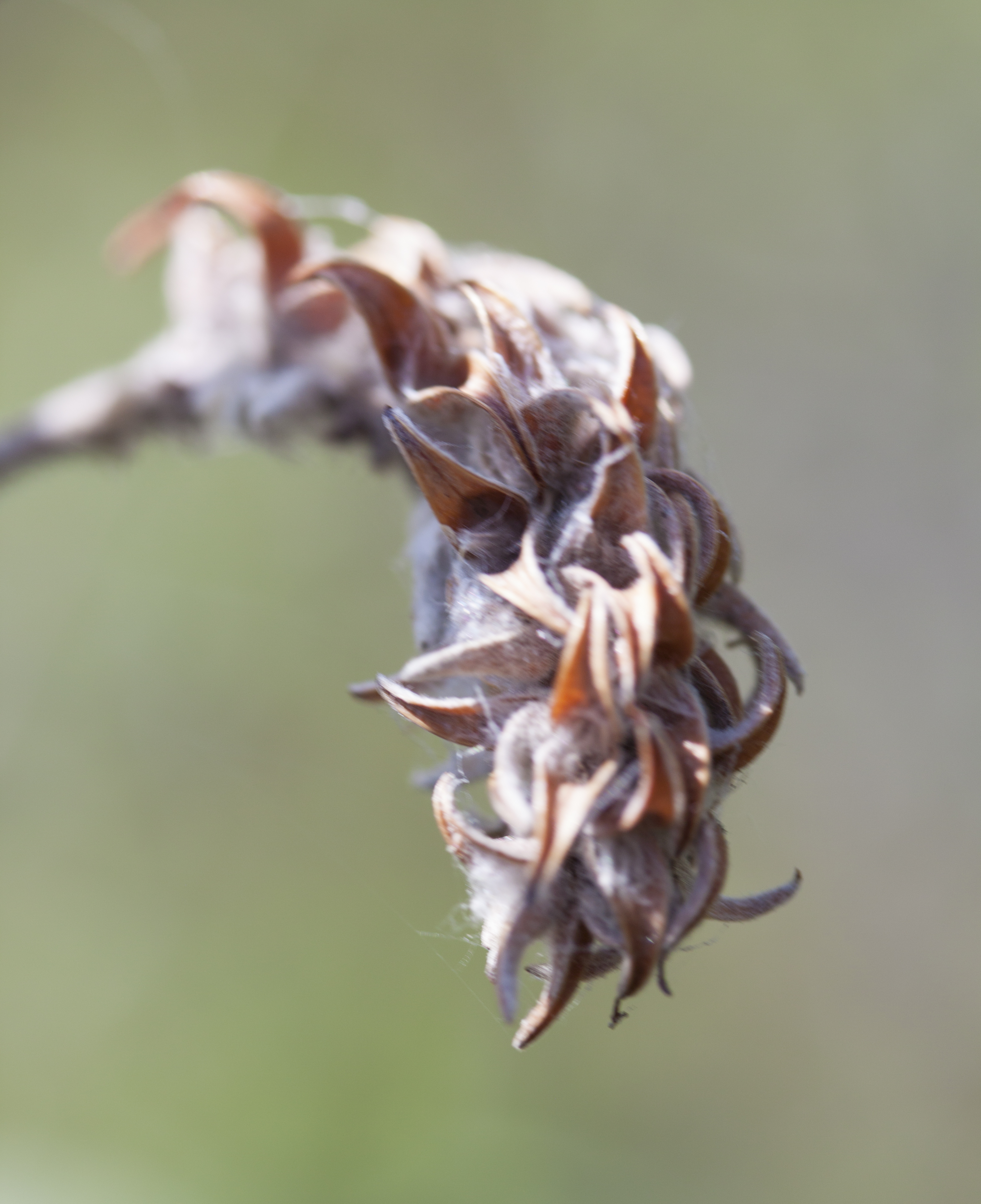 This Salix glauca (gray leaf willow) can be identified as female because it has a female catkin. This plant is not unisex like most, but has a male and female plant. Outside of Kangerlussuaq, Greenland.