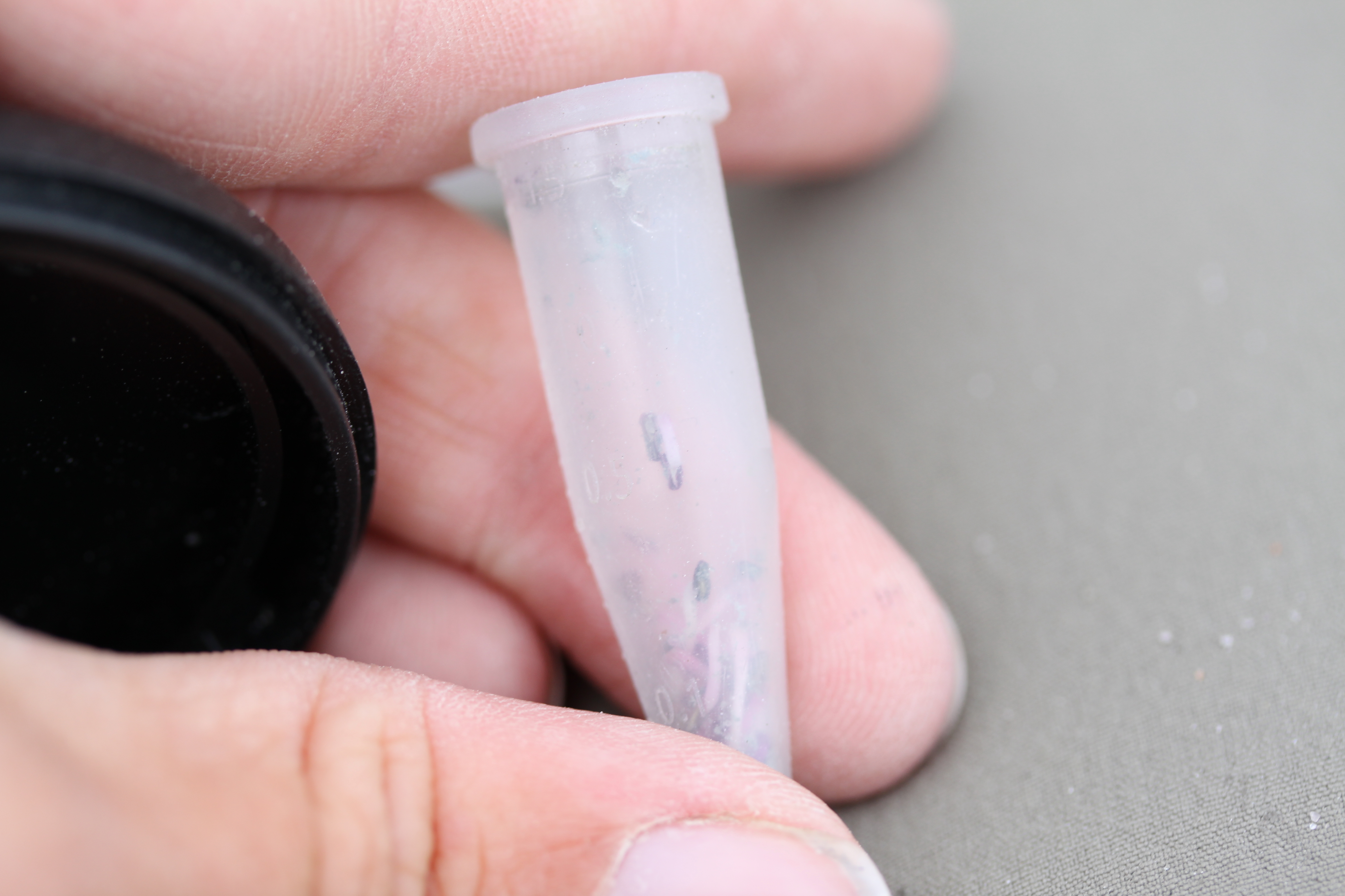 A vial with collected stamen. Outside of Kangerlussuaq, Greenland.