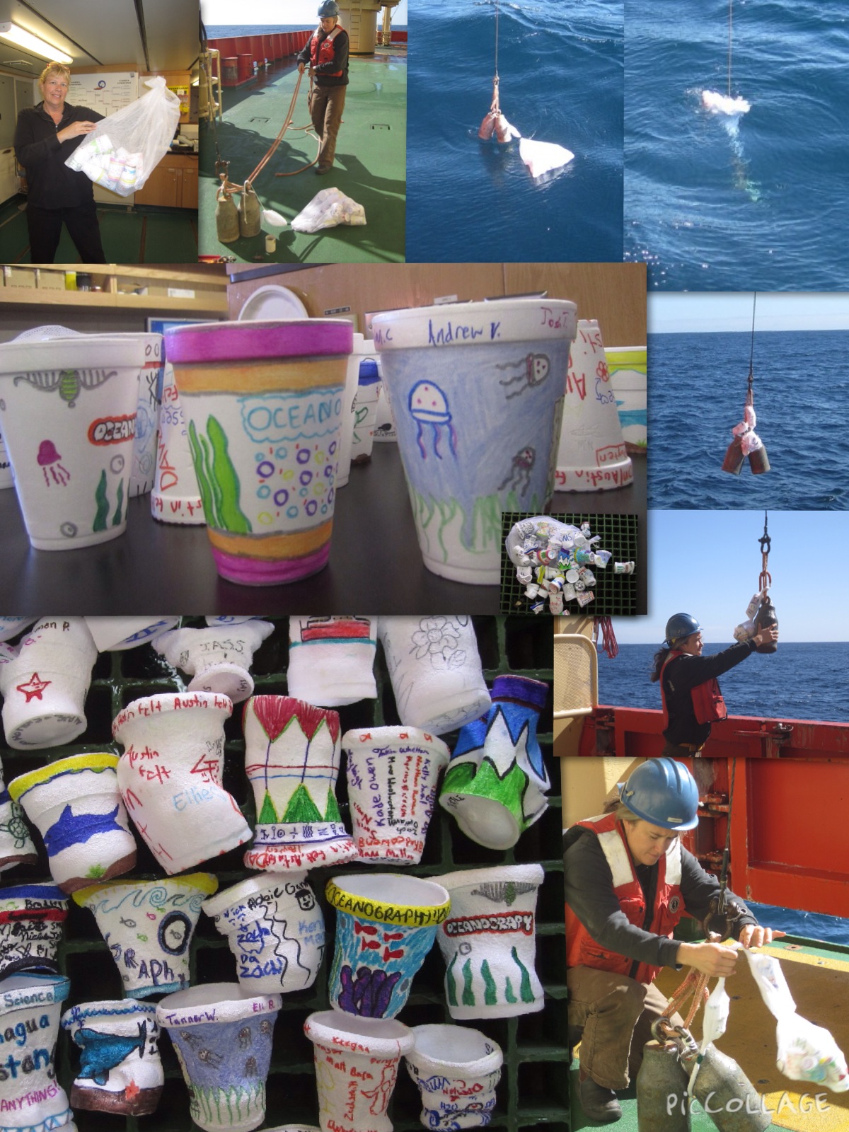 Jillian Worssam: "Thanks to the flexibility of the bridge and the marine tech department, styrofoam cups made it down 800 meters." Aboard the R/V Nathaniel B. Palmer icebreaker.