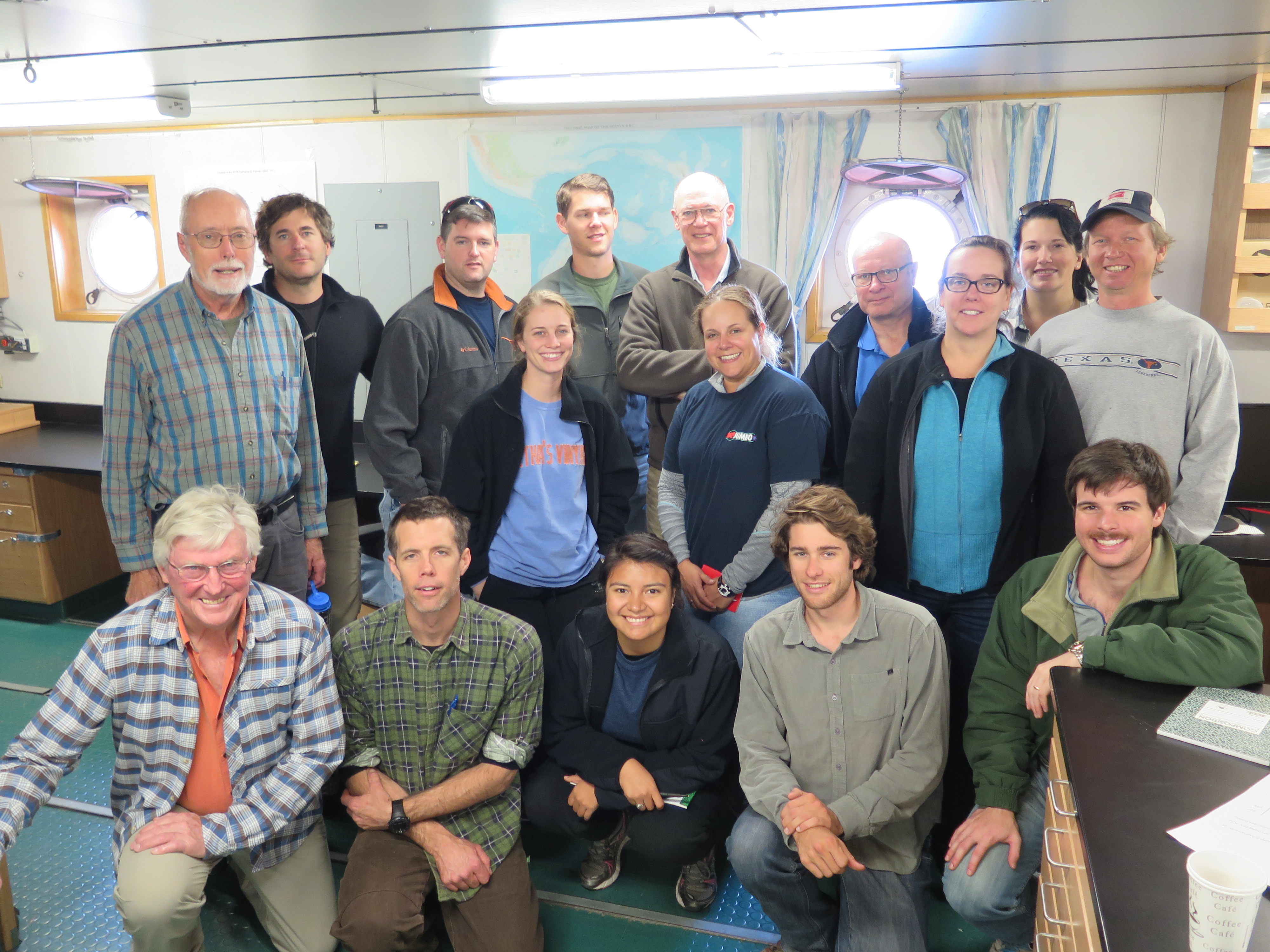 The research team gathers for a group photo aboard the R/V Nathaniel B. Palmer icebreaker.