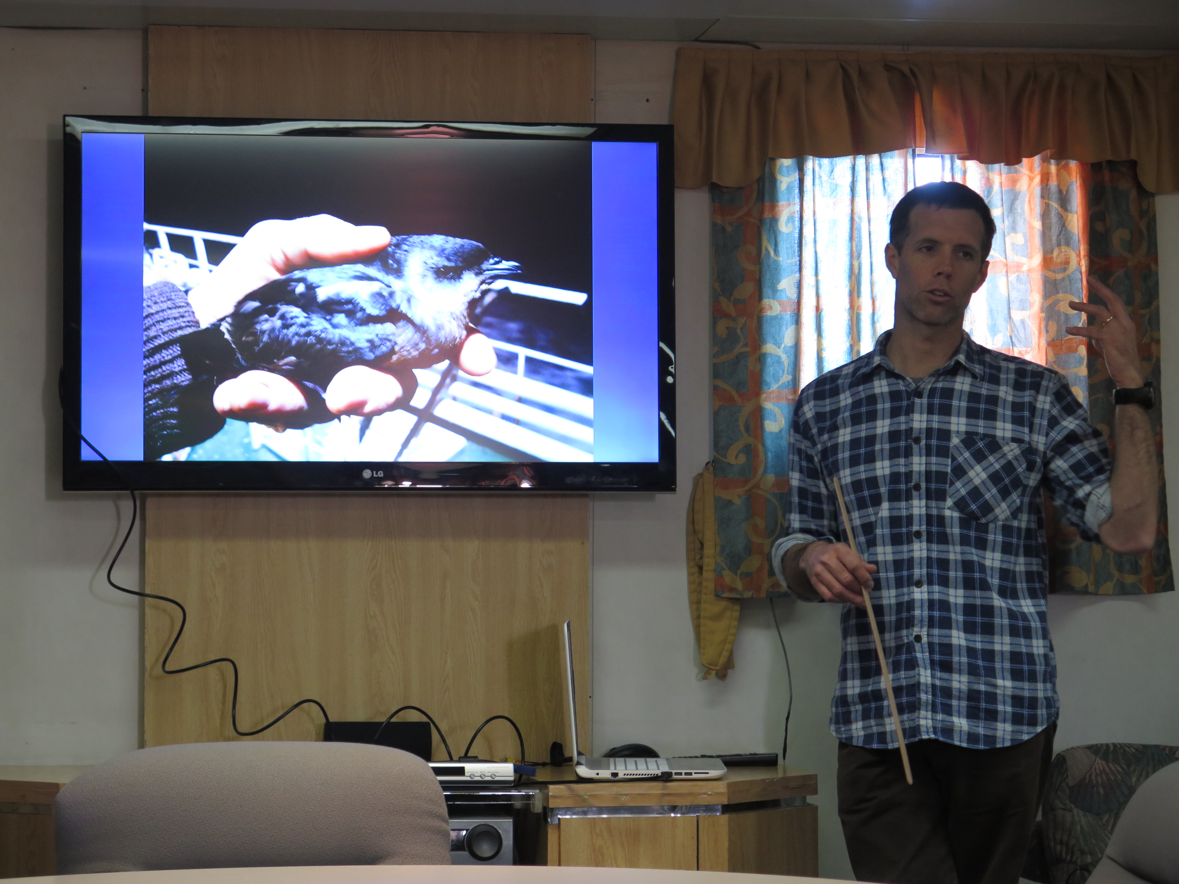 Graham Parker gives a talk on the different species that the team might find in the environment surrounding South Georgia. Aboard the R/V Nathaniel B. Palmer icebreaker.