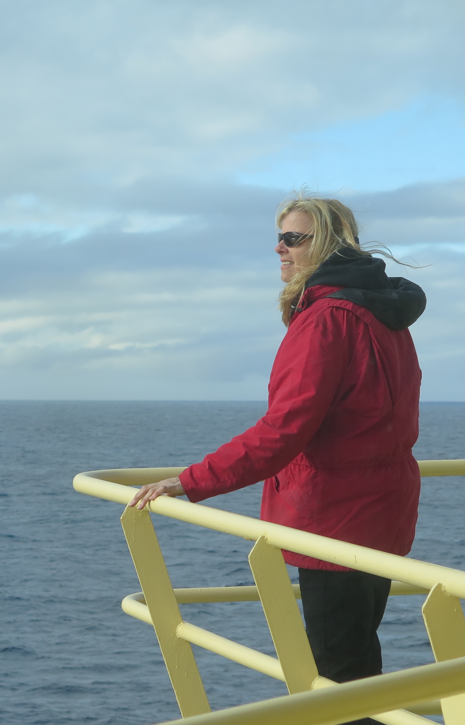 Jillian Worssam takes in the view aboard the R/V Nathaniel B. Palmer icebreaker, south of South Georgia.
