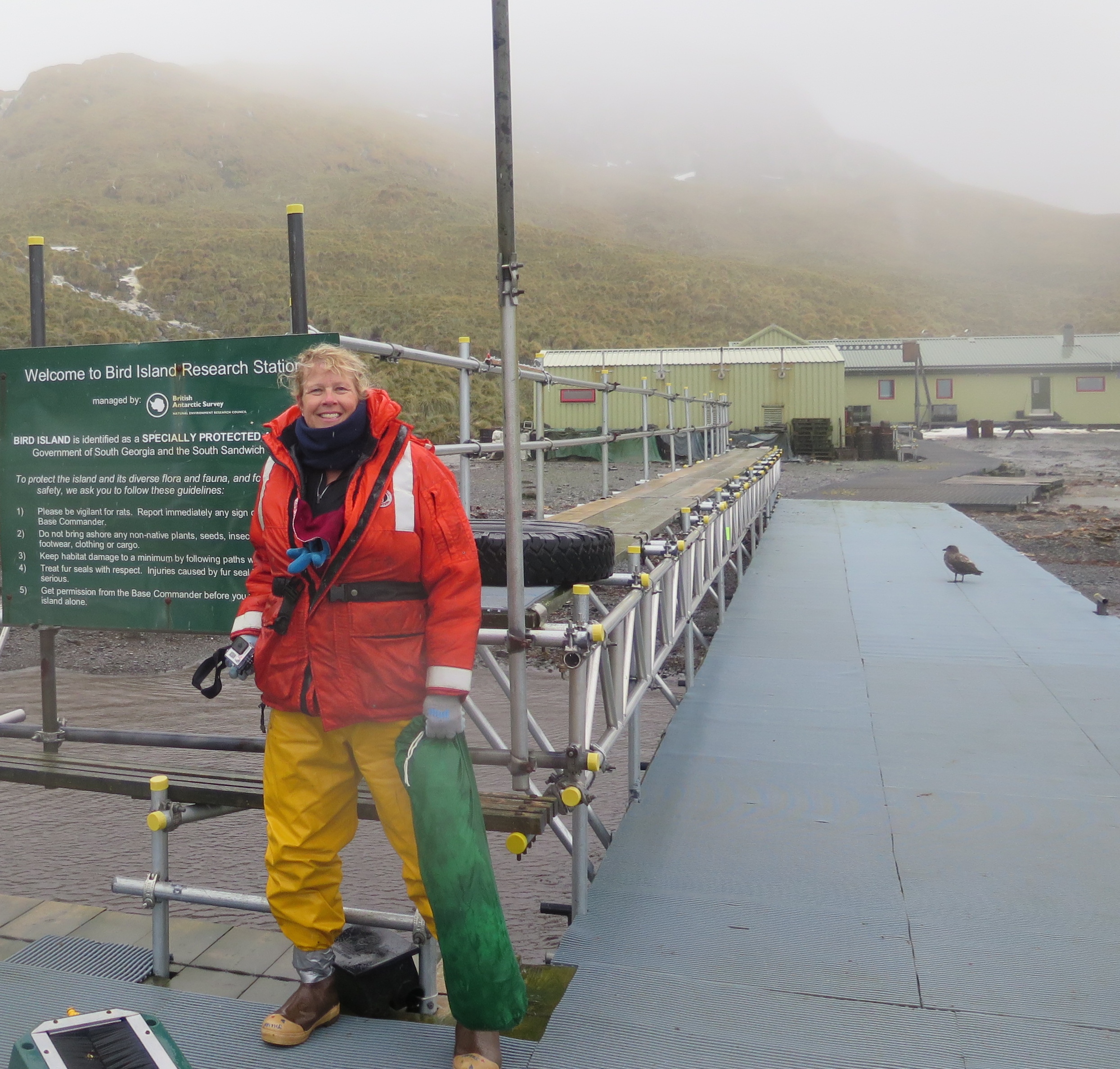 Jillian Worssam arrives on Bird Island, South Georgia.