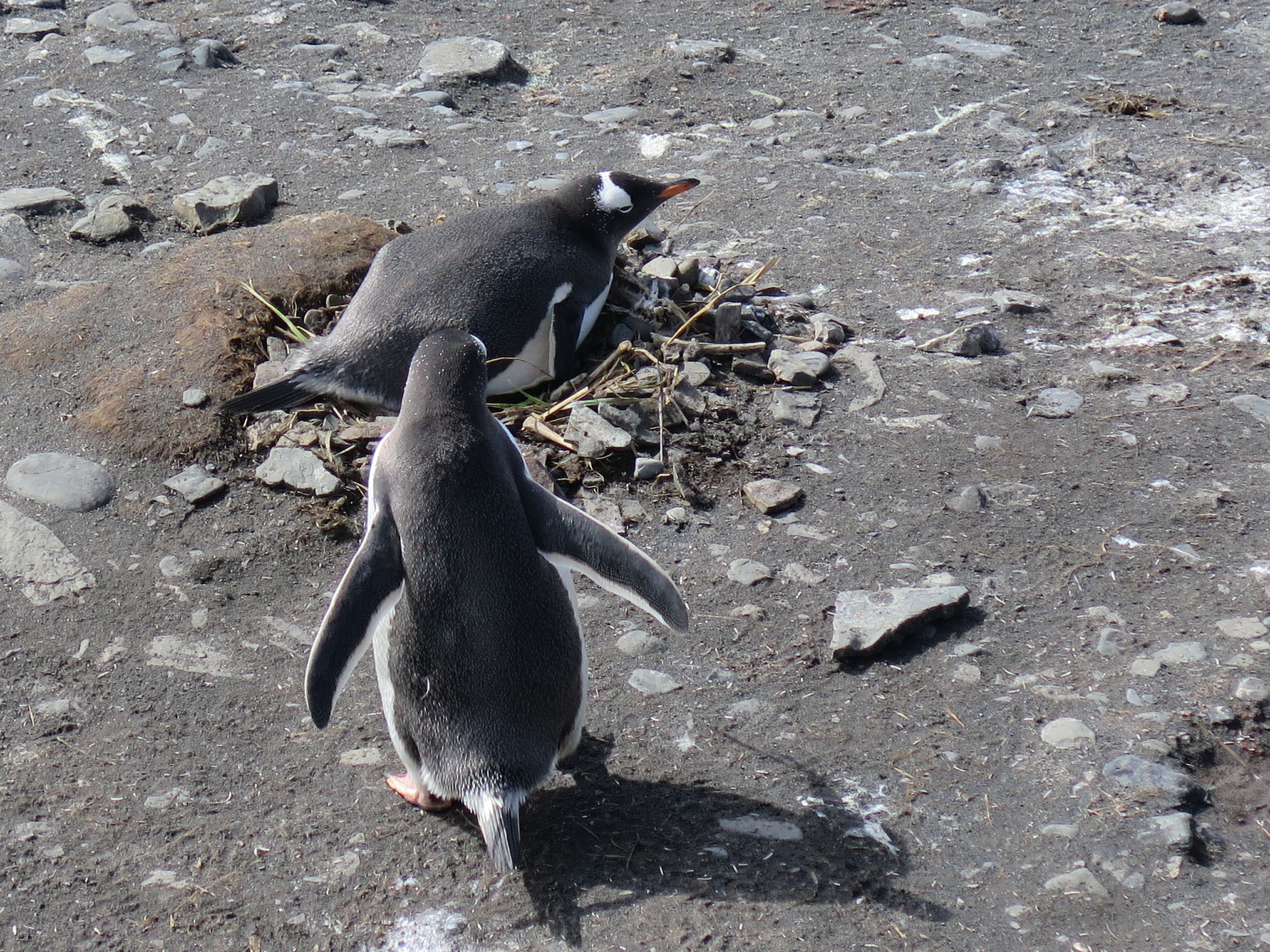 A pair of gentoo penguins on Annenkov Island, South Georgia.