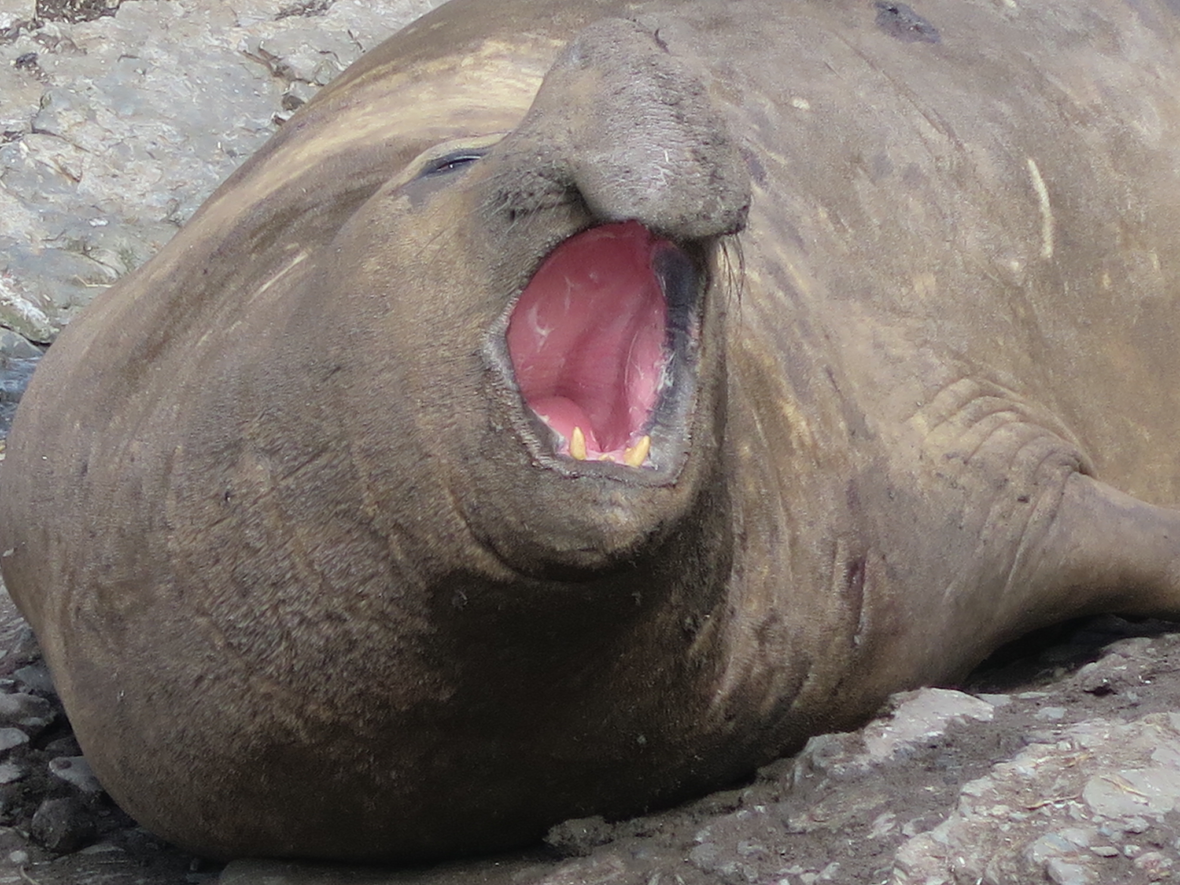 An elephant seal on a beach on Annenkov Island, South Georgia.