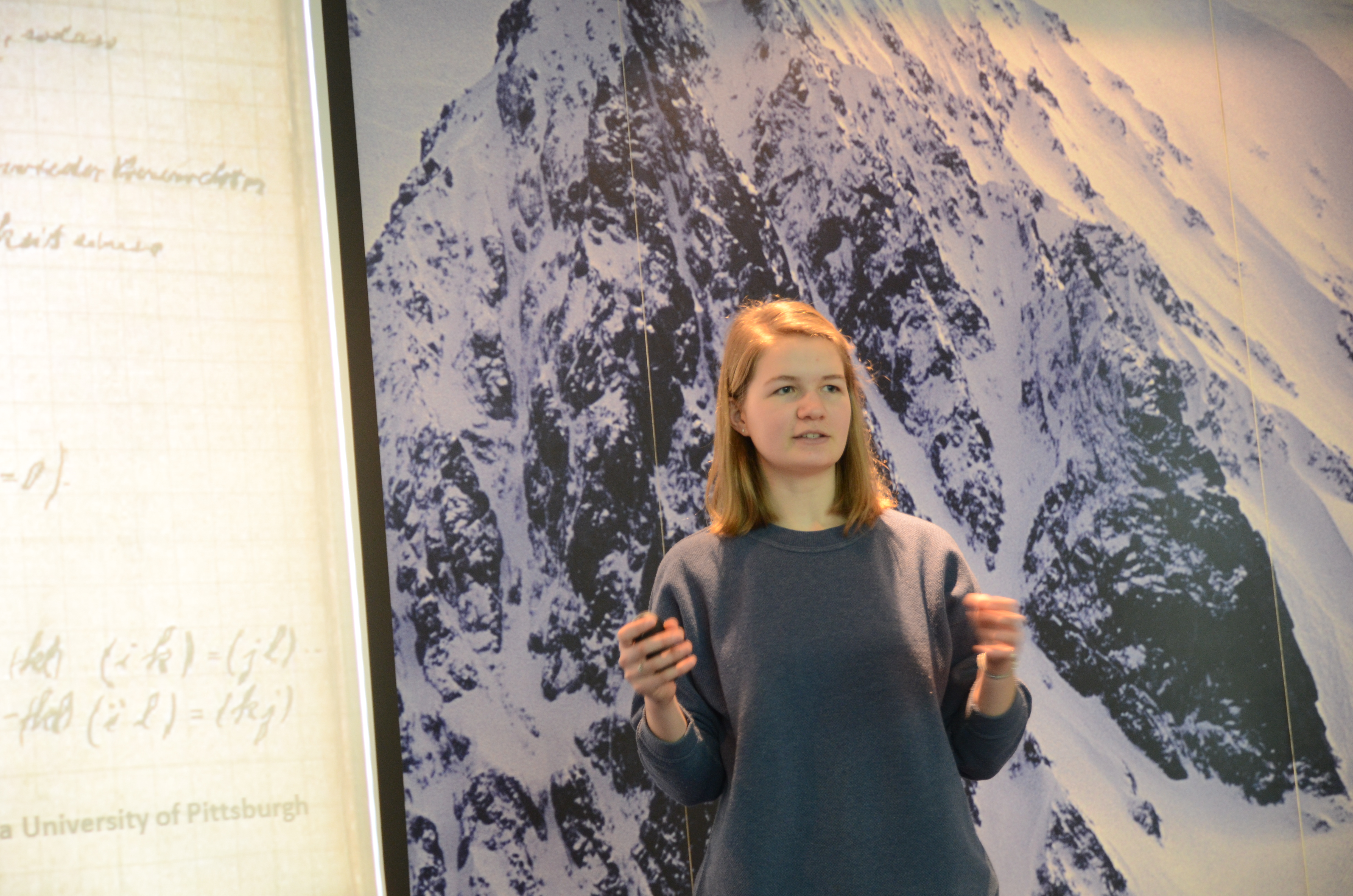 Claire Hacker presents her science work at INACH in Punta Arenas, Chile. Punta Arenas, Chile.