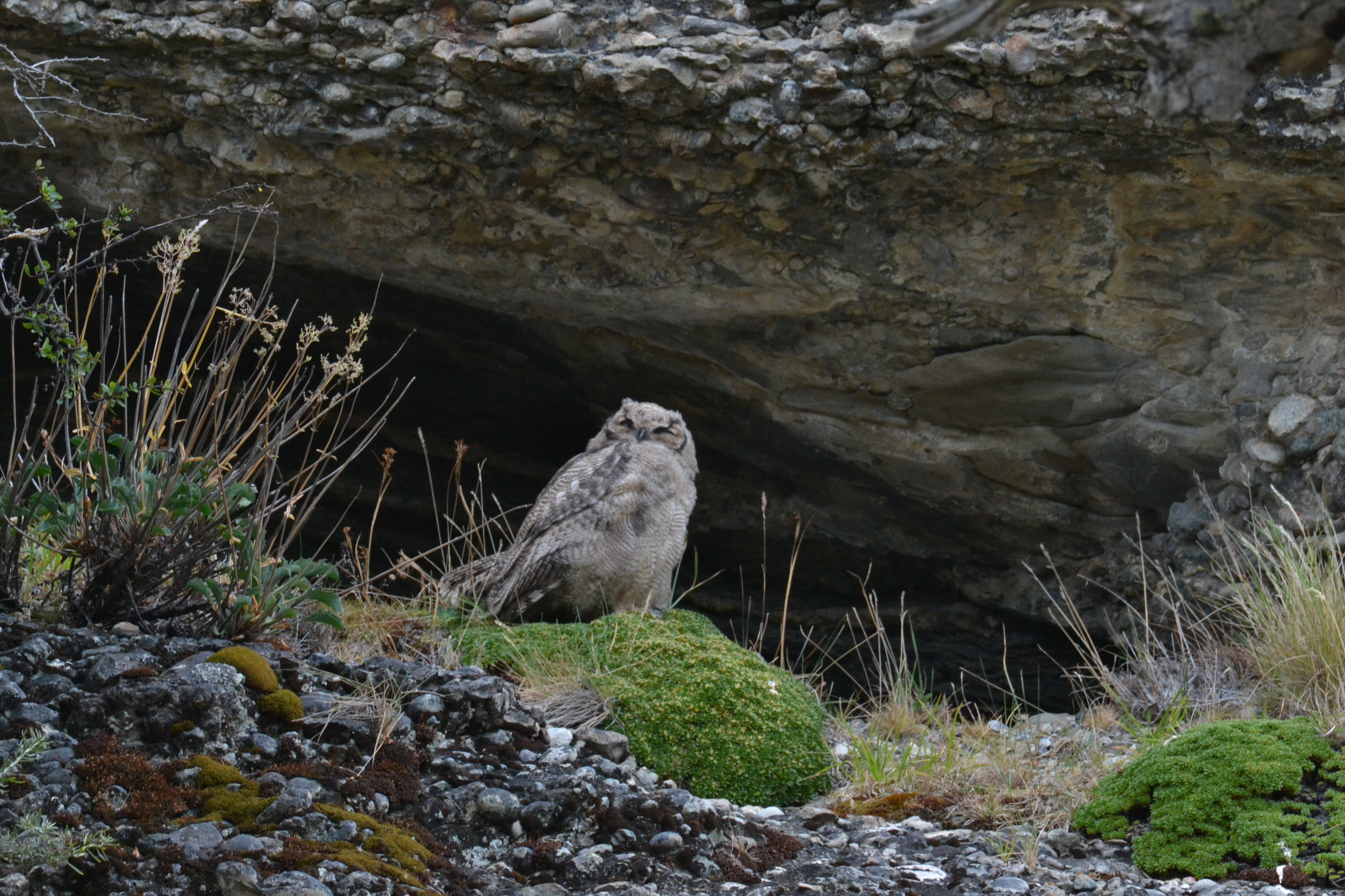 A lesser horned owl at Milodon cave in Torres del Paine National Park, Chile. Torres del Paine National Park, Chile.