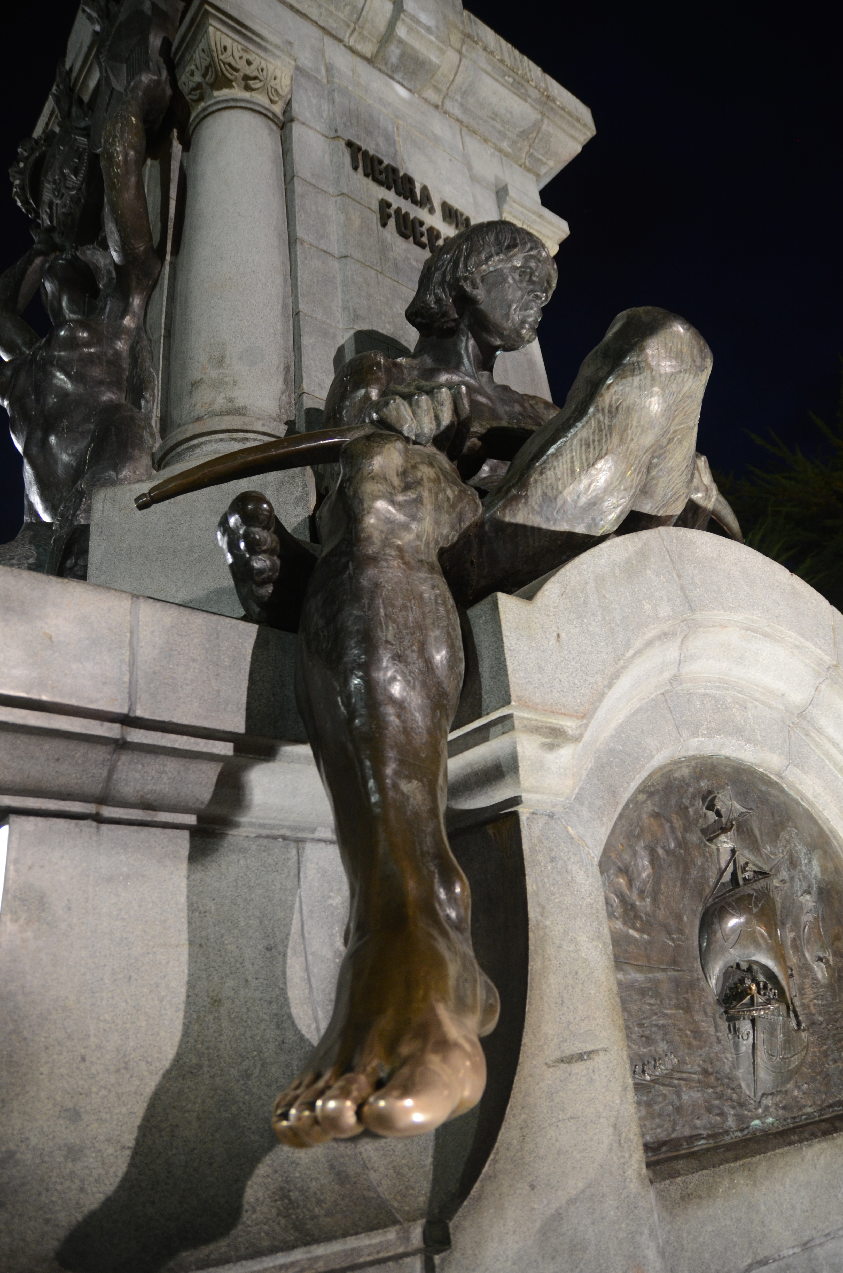 Ferdinand Magellan's statue in Punta Arenas. Folklore says those who kiss his foot will return safely to Punta Arenas. Punta Arenas, Chile.