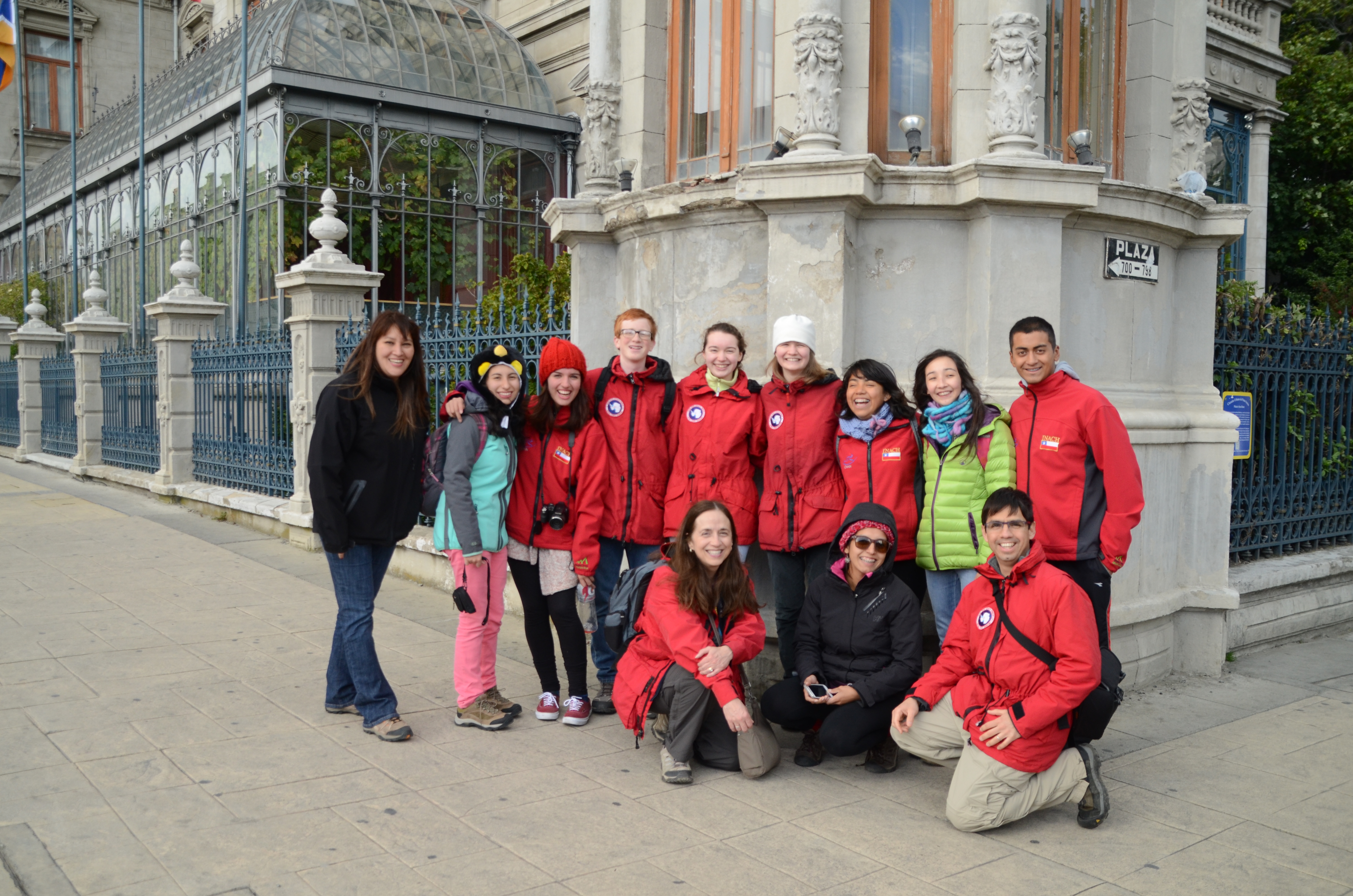 The JASE team explores Punta Arenas and poses in front of the historic residence of Sara Braun. Punta Arenas, Chile.