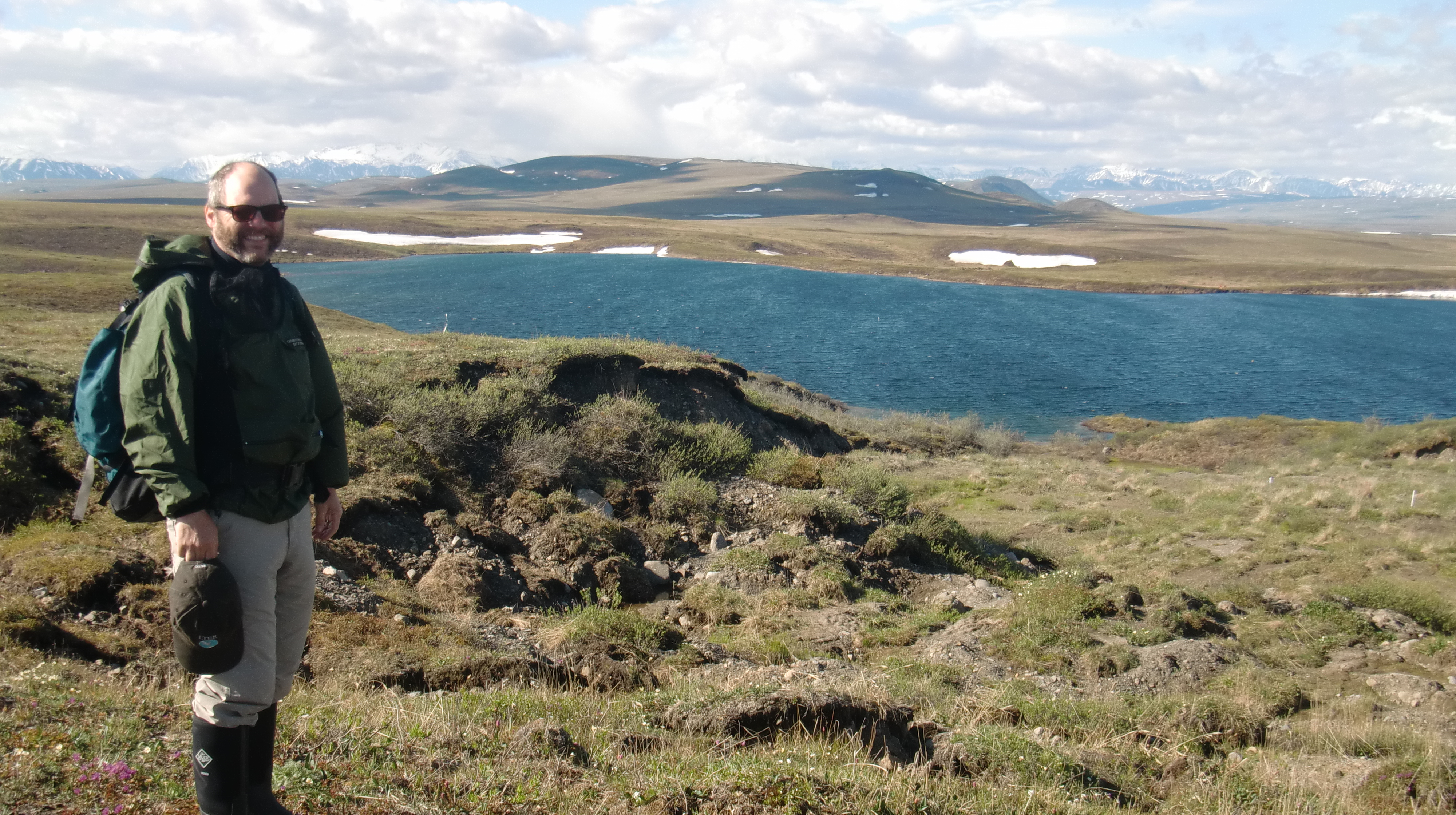Dr. Byron Crump the thermokarst at NE-14. Toolik Field Station, Alaska.
