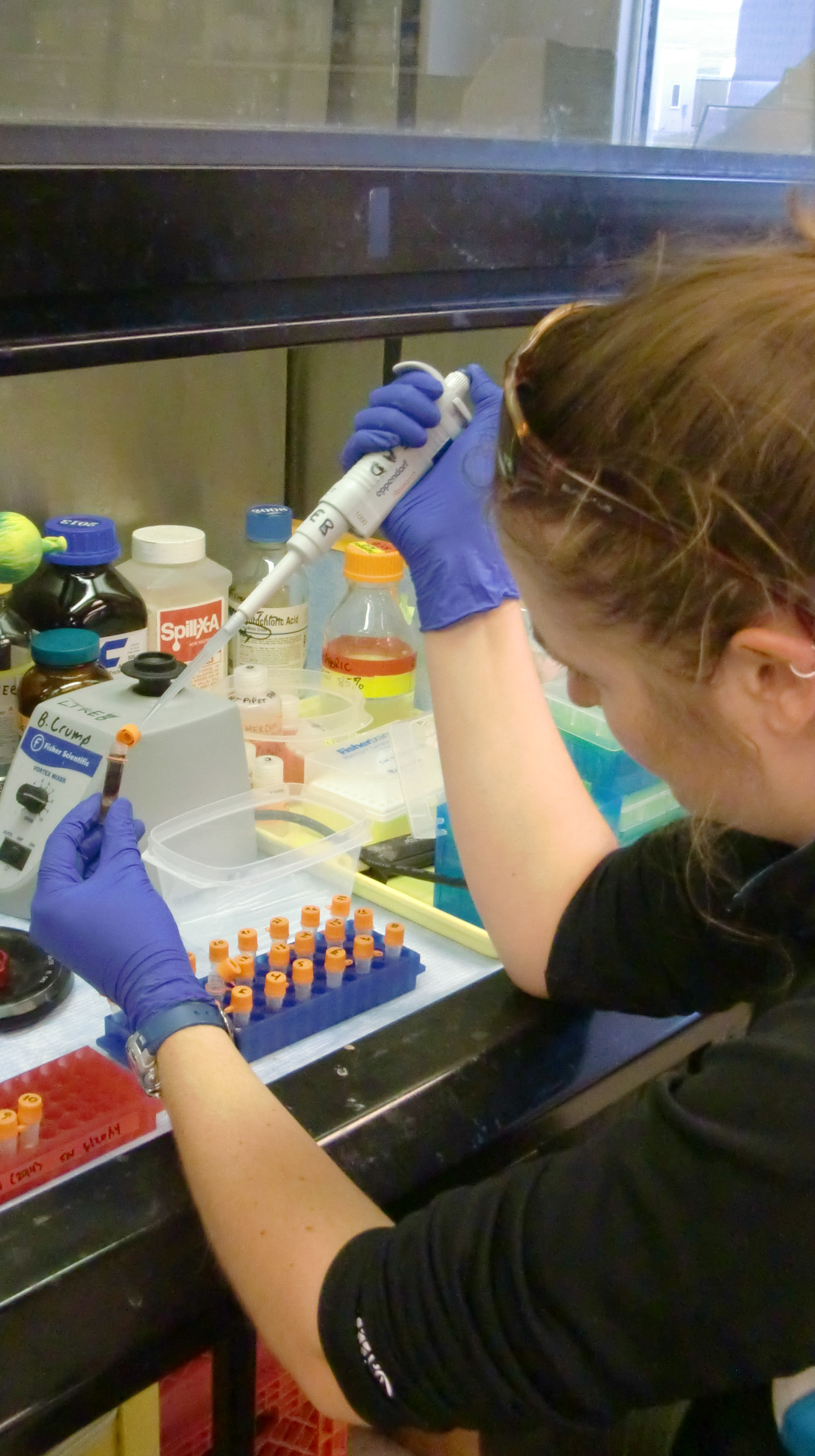 Lauren Watel works on a microbial DNA extraction. Toolik Field Station, Alaska.