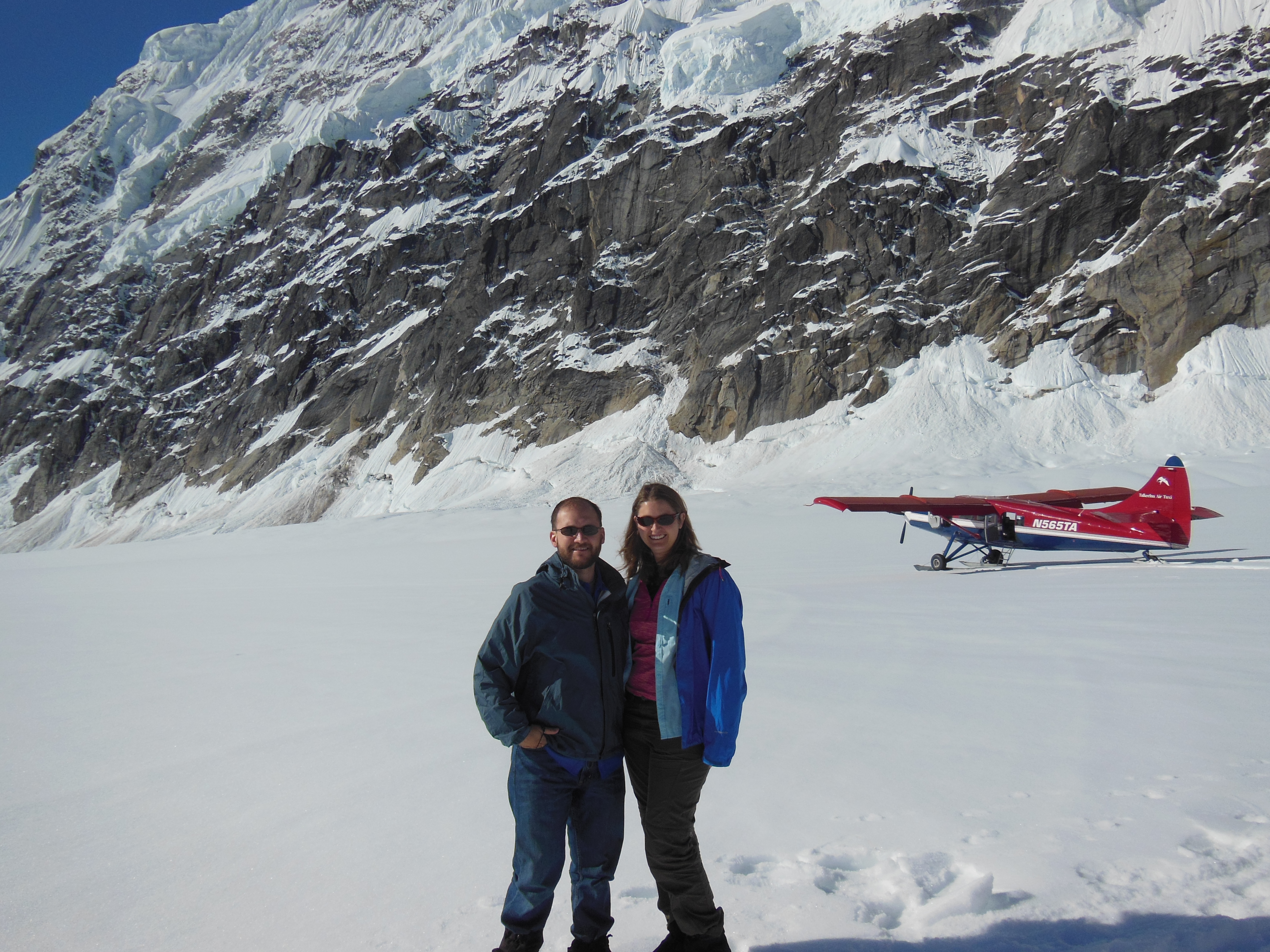 Lauren and Ethan Watel on Ruth Glacier in Denali National Park and Preserve, Alaska.