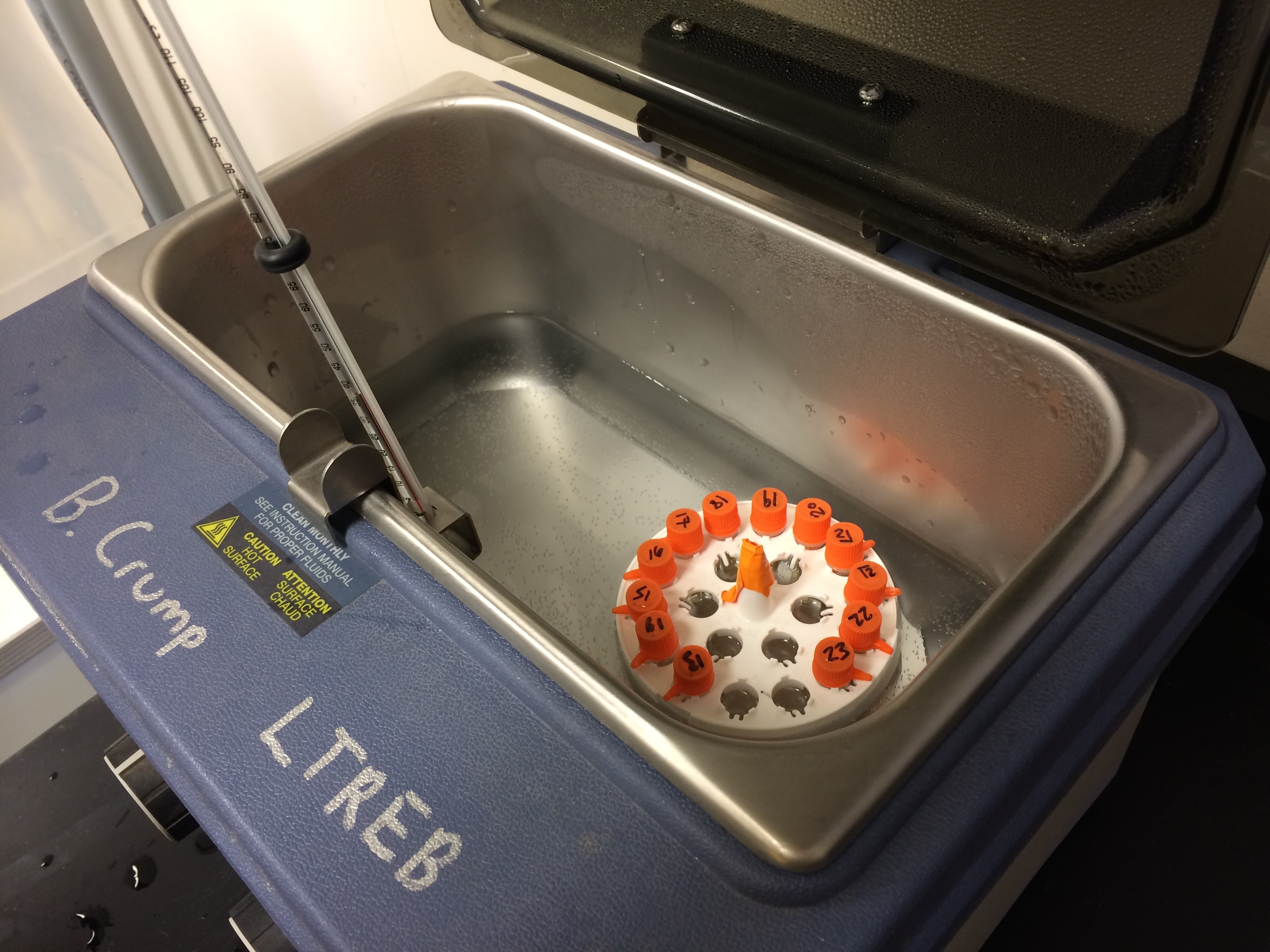 The DNA goes through a series of rapid freezing at -80ºC and then is incubated in a hot water bath at 37ºC to shock the cells and help destroy their membranes. Toolik Field Station, Alaska.