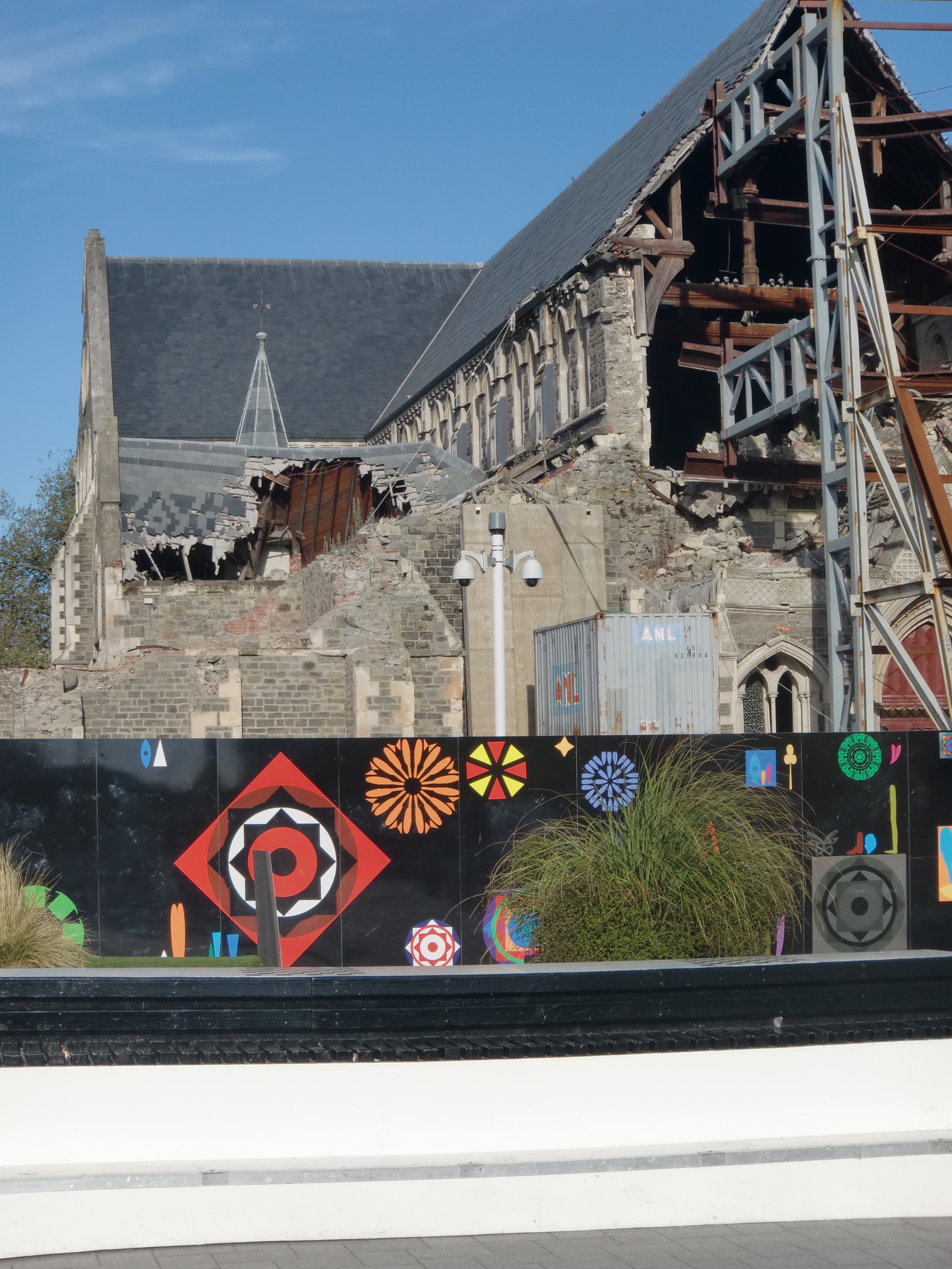 The damage to the main catherdral done by the 2011 earthquake in Christchurch, New Zealand.