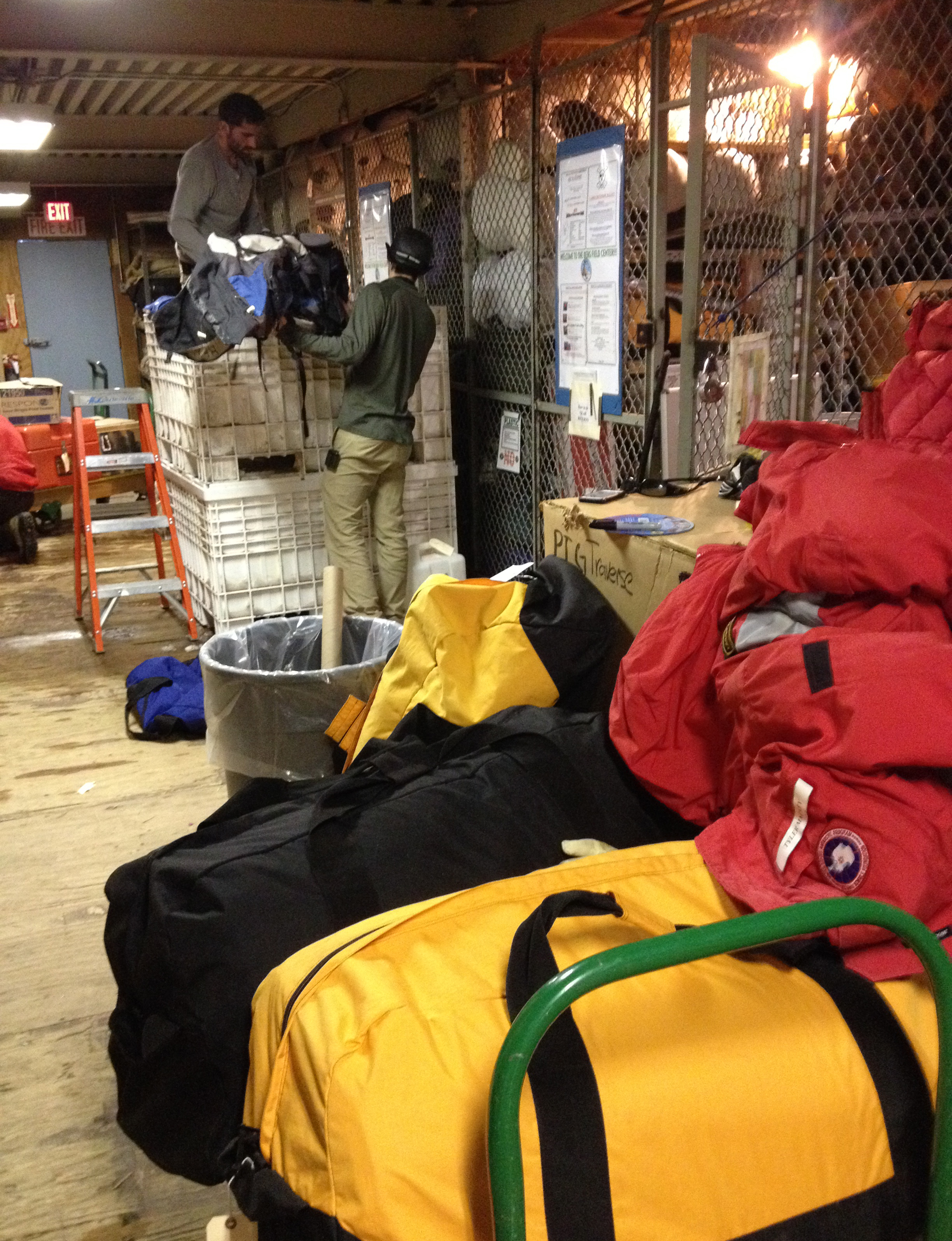 Scientists prepare for a field season of camping in the Dry Valleys of Antarctica. McMurdo Station, Antarctica.
