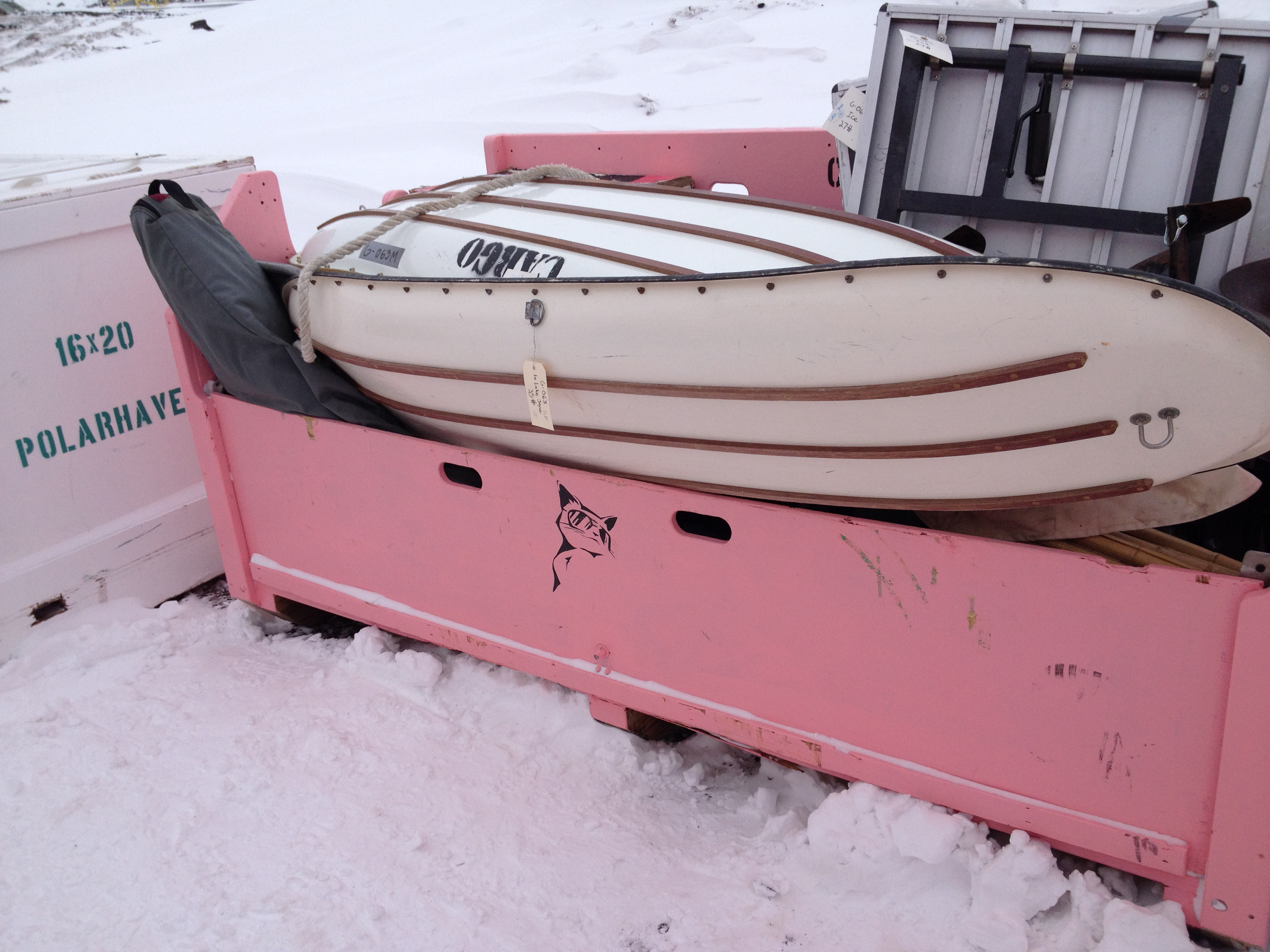 A collection of camping equipment waiting for helicopter flight to the Dry Valleys of Antarctica. McMurdo Station, Antarctica.