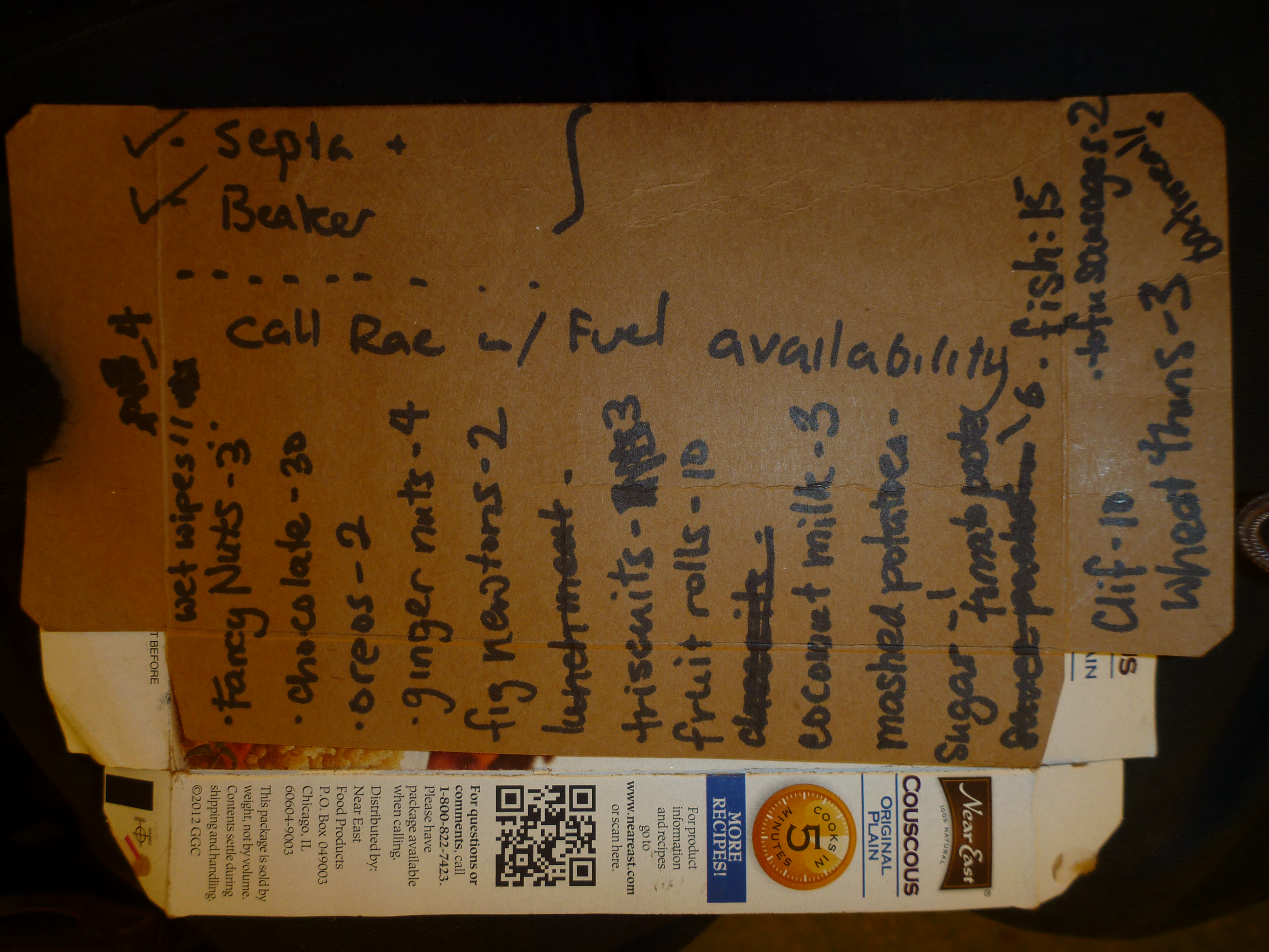 A list of supplies rquested for transport to a remote Dry Valleys field camp. Lake Joyce, Antarctica.