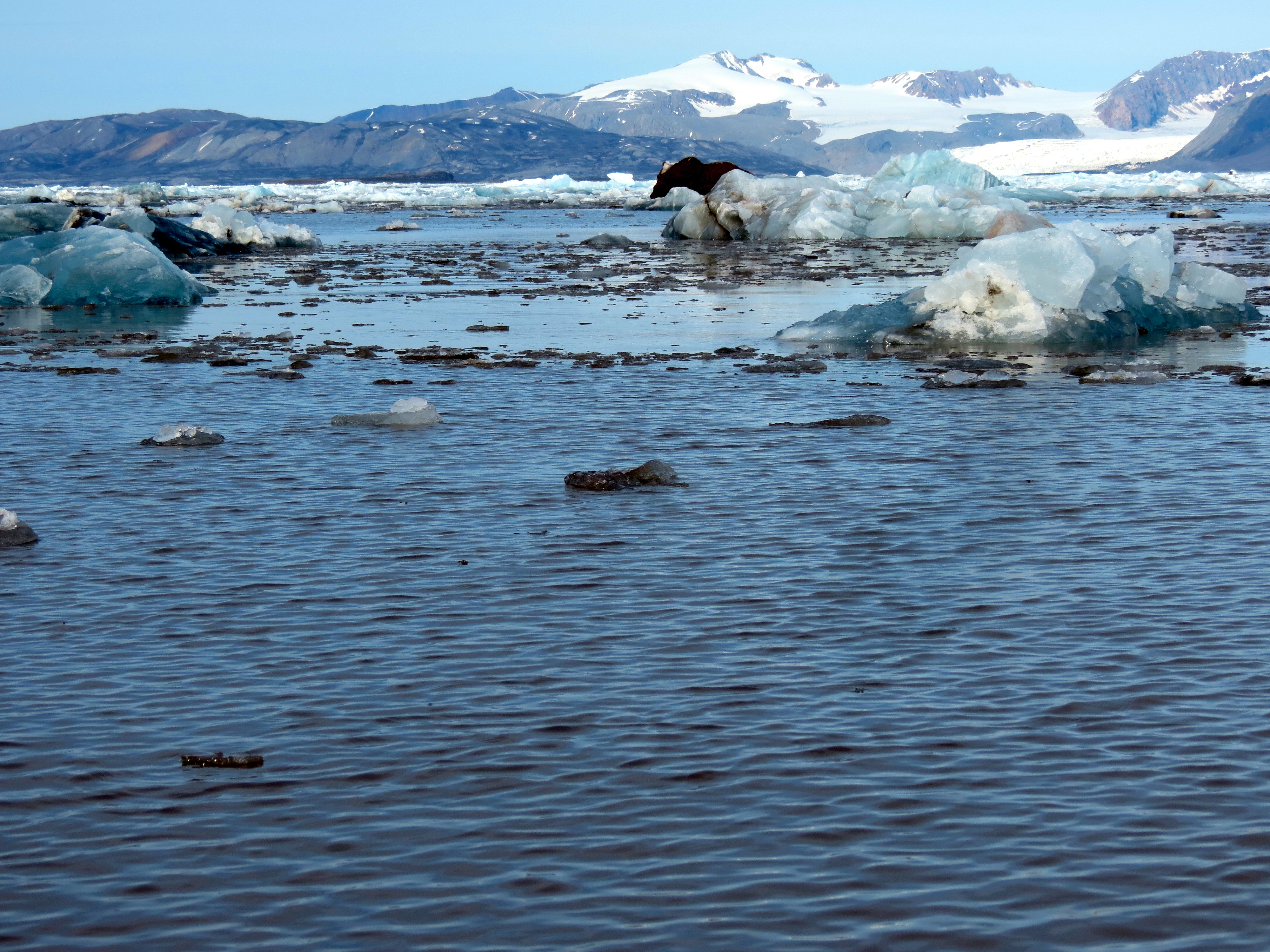 Peggy McNeal: "It was tricky navigating and working in this ice. We often had to wait a day or two for ice to clear out of areas that we wanted to measure." Kongsfjorden, Ny Alesund, Svalbard, Norway.
