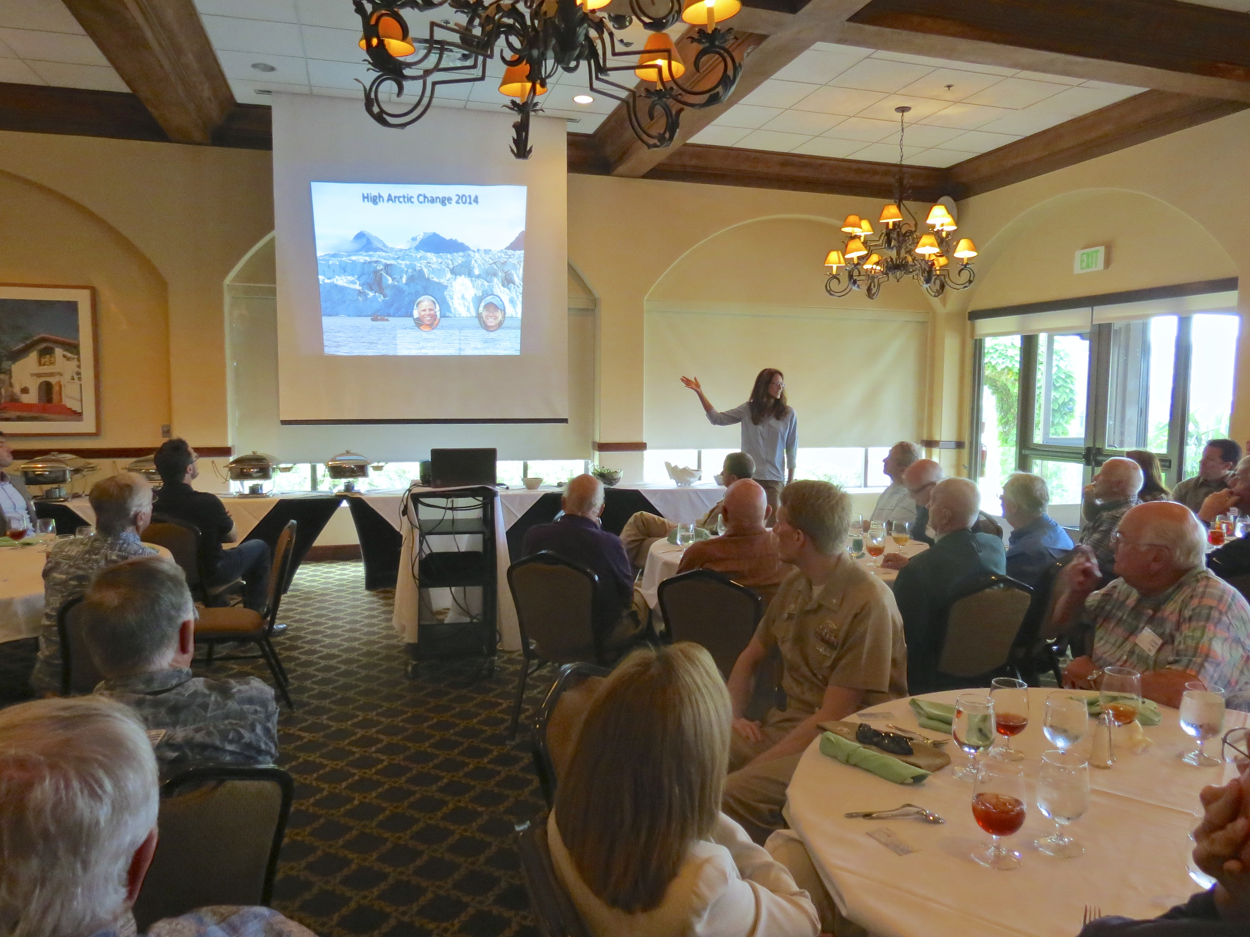 Peggy McNeal conducts outreach with the Naval Academy Alumni Association. Peggy McNeal: "This group of retired and active duty military officers was very interested in our expedition." San Diego, California.