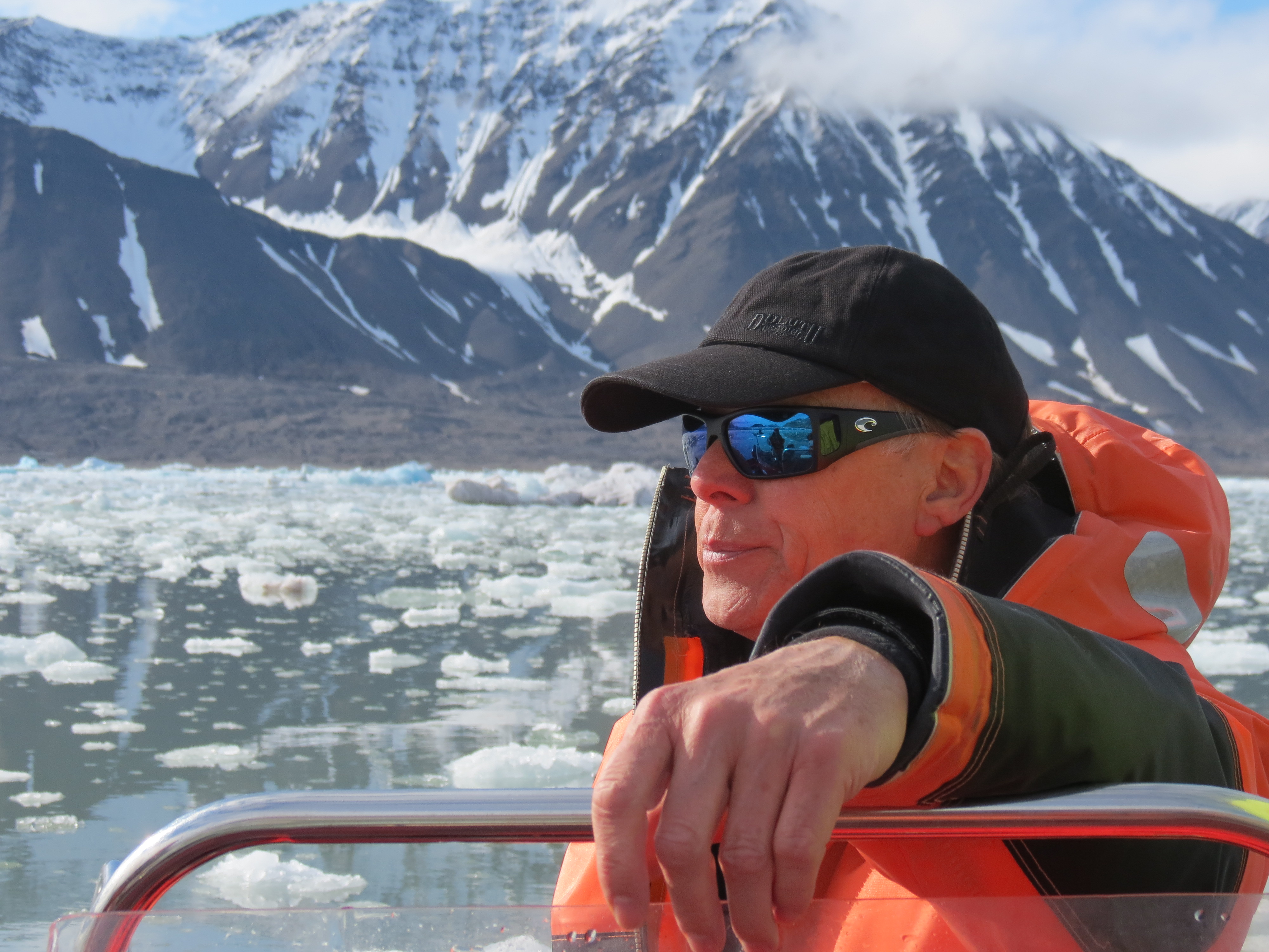 Researcher Ross Powell out on Kongsfjorden, Ny Alesund, Svalbard, Norway.