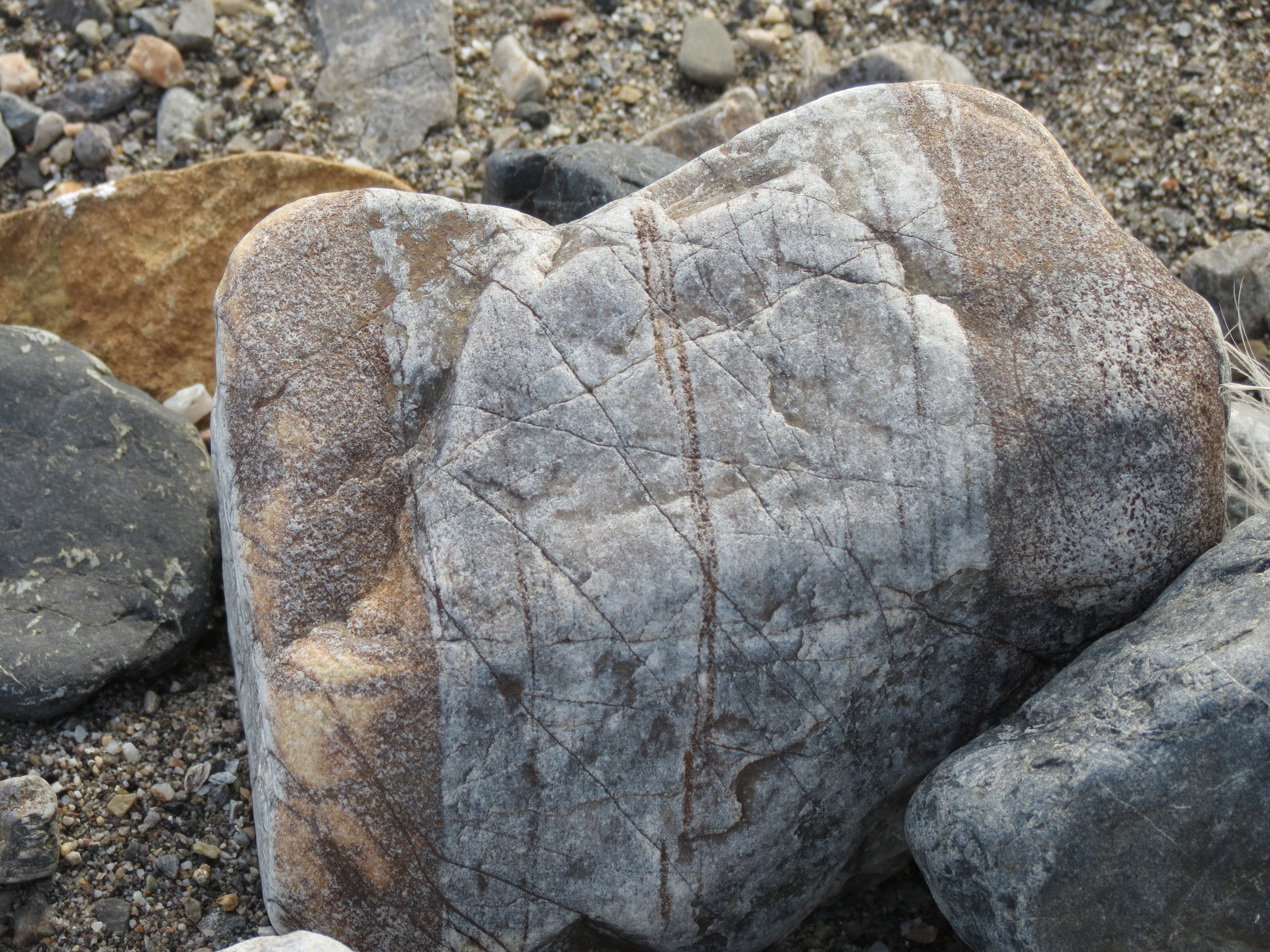 Glacial striations are scratches or gouges cut into bedrock by glacial abrasion. Ny Alesund, Svalbard, Norway.