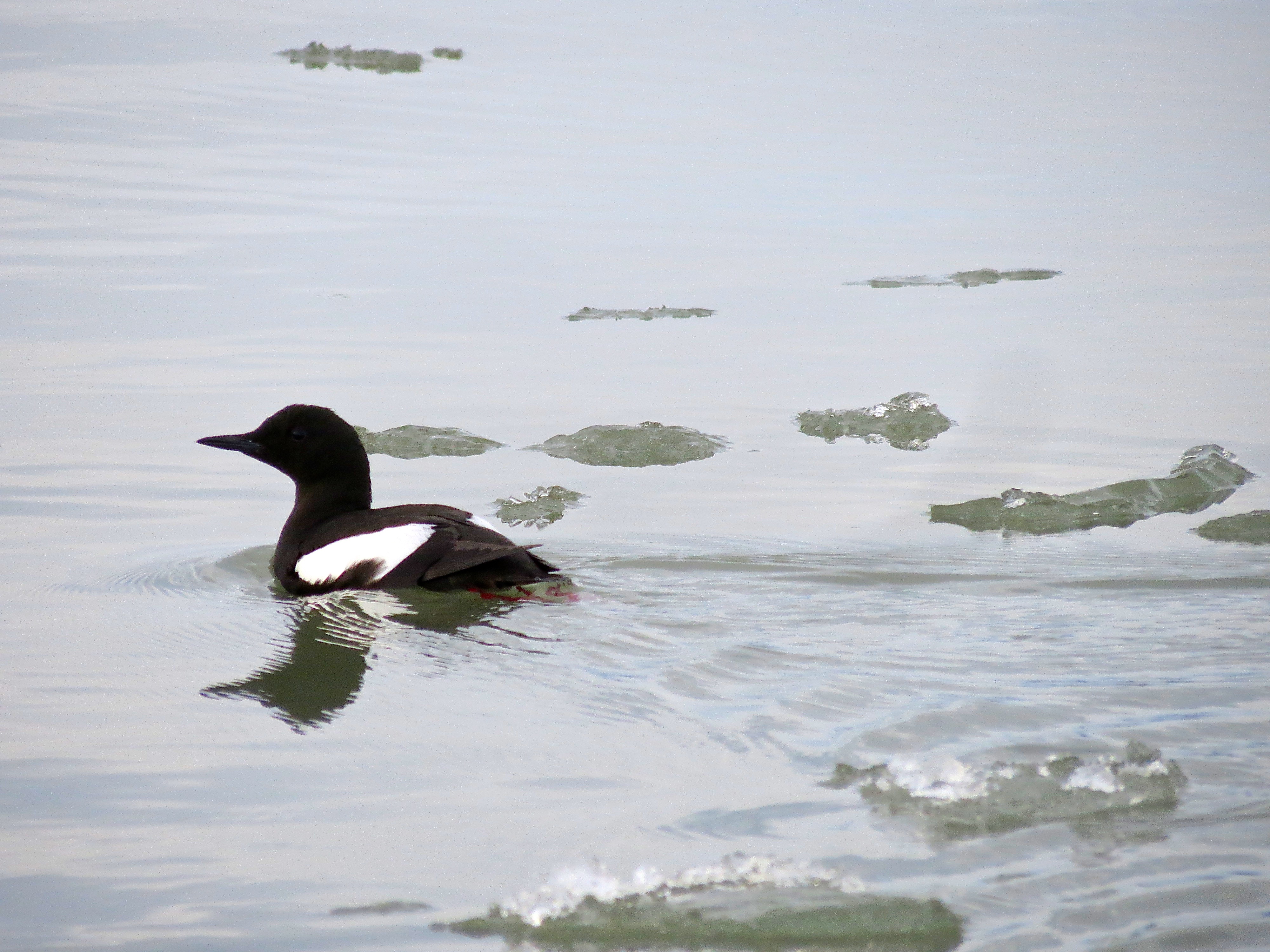 Black guillemots float on the water and then quickly dive and vanish. Kongsfjorden, Ny Alesund, Svalbard, Norway.