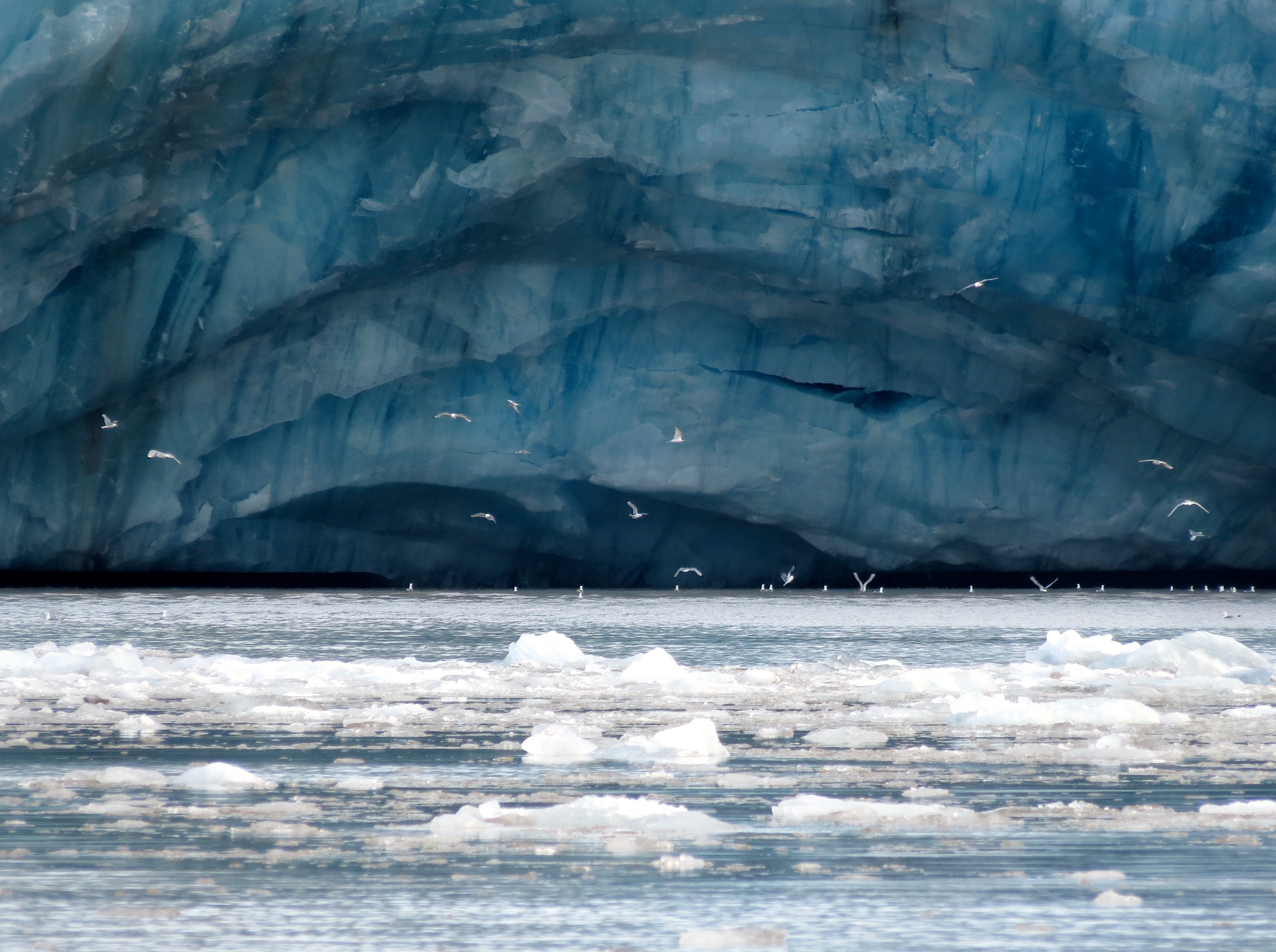 These birds are feeding on nutrients brought up by a subglacial stream. Kongsfjorden, Ny Alesund, Svalbard, Norway.