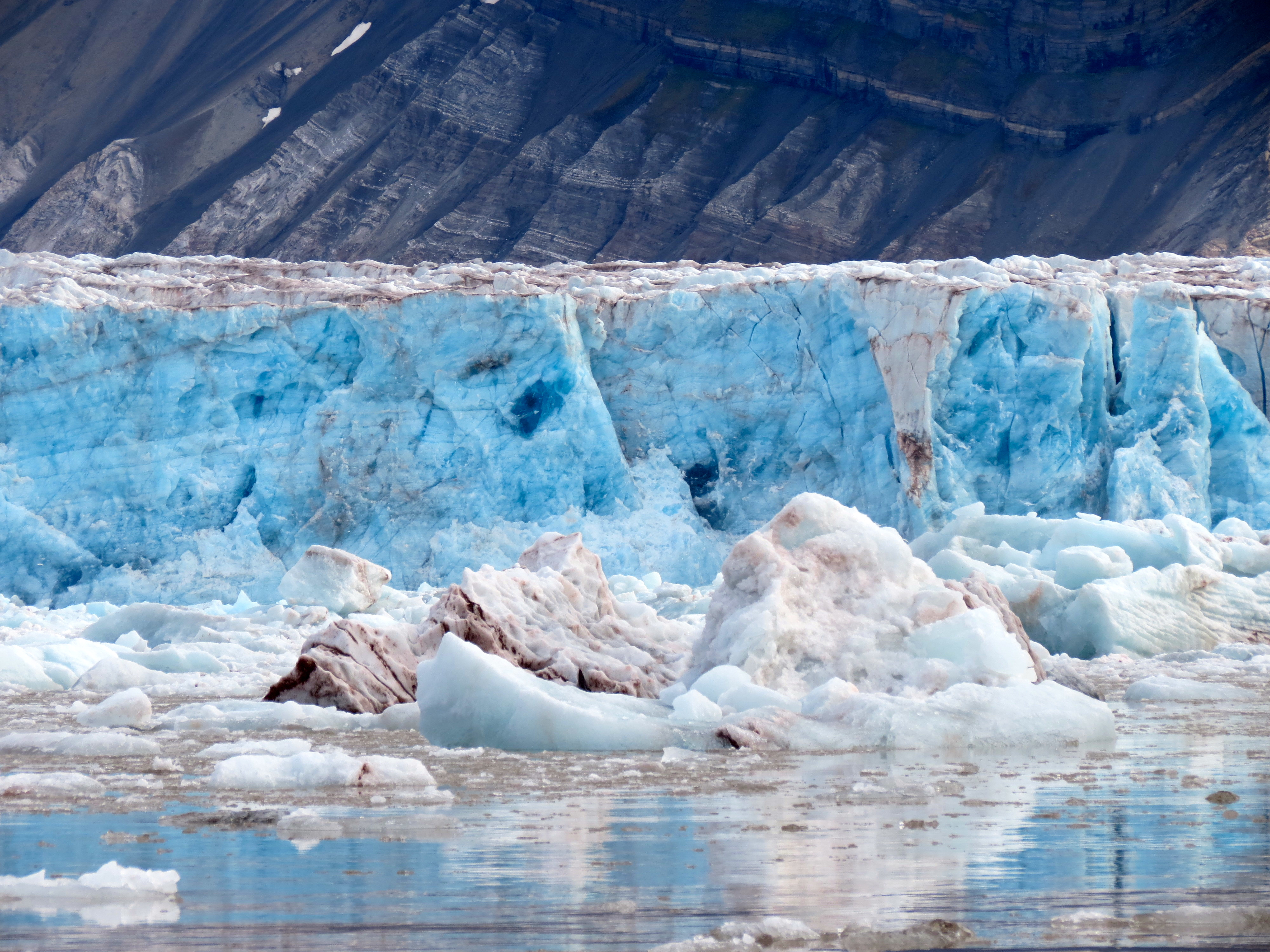 The blueness of the ice changes with the degree of pressure that the ice is under. Kongsfjorden, Ny Alesund, Svalbard, Norway.