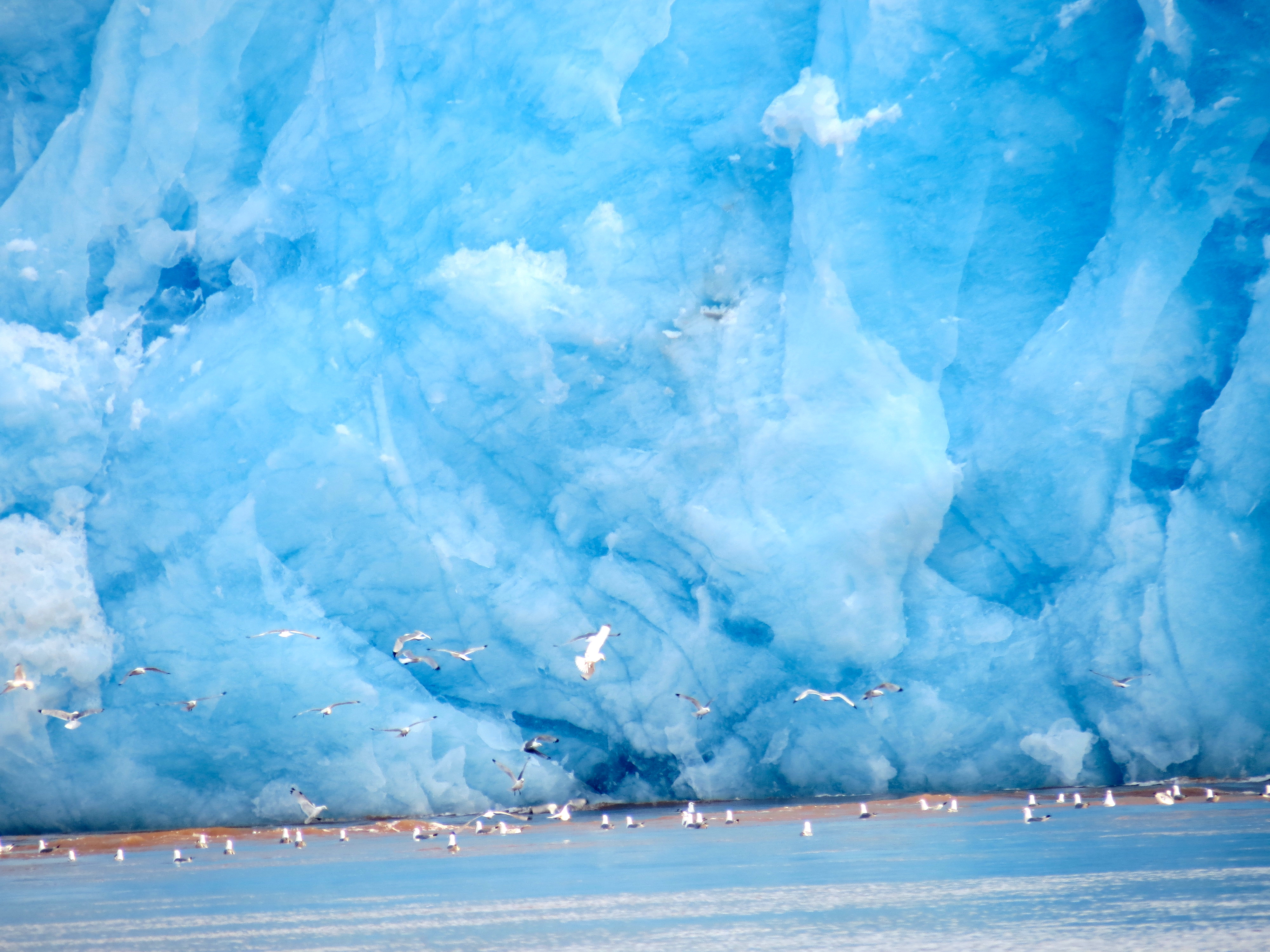 The brown water in front of the glacier is the area of upwelling. Ny Alesund, Svalbard, Norway.