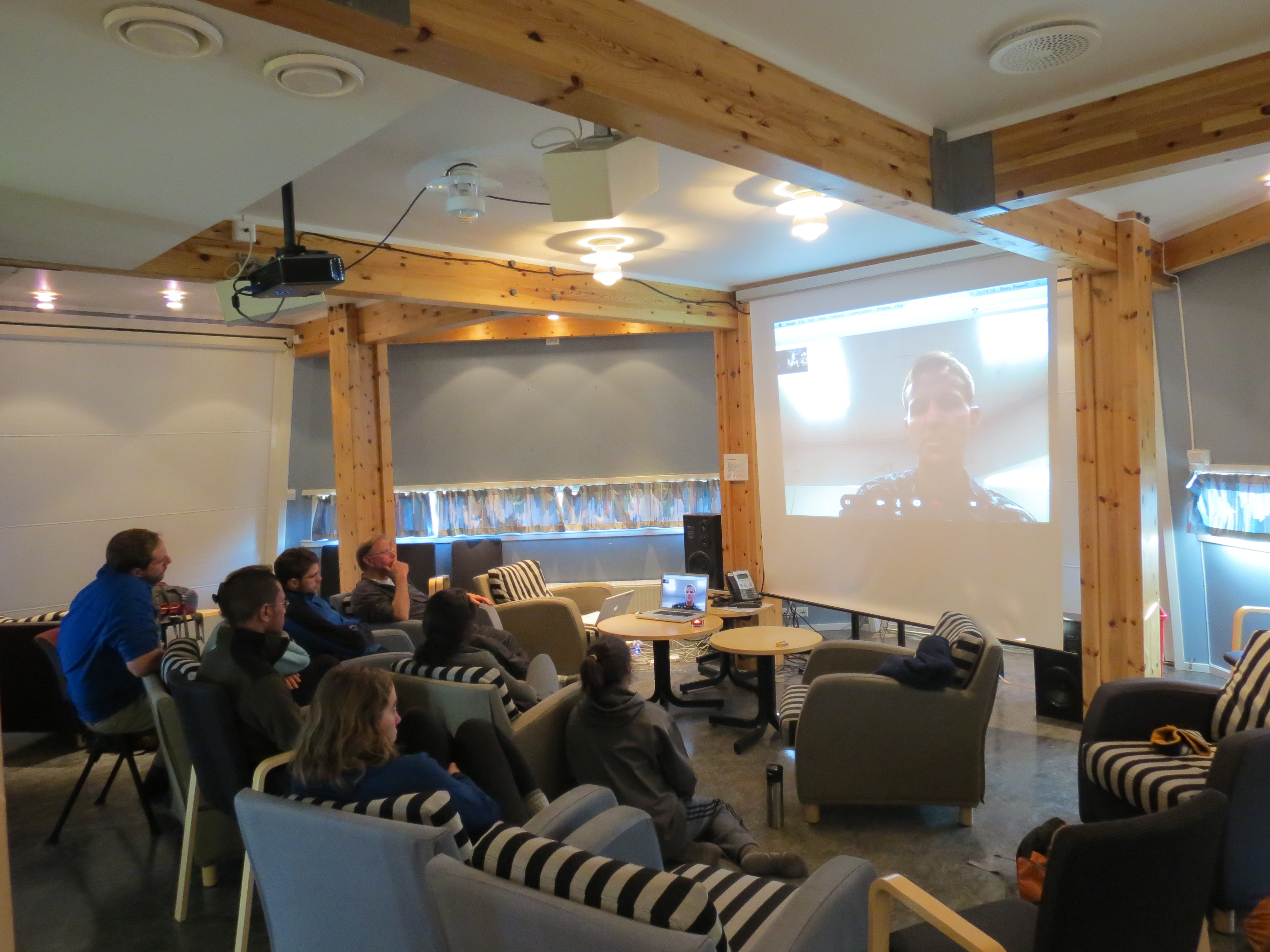 The REU group has an informative Skype session with the Naval Oceanographic and Meteorological Command. The group discussed the Navy's role in oceanography and meterology and careers in the Navy for these specialties. Ny Alesund, Svalbard, Norway.