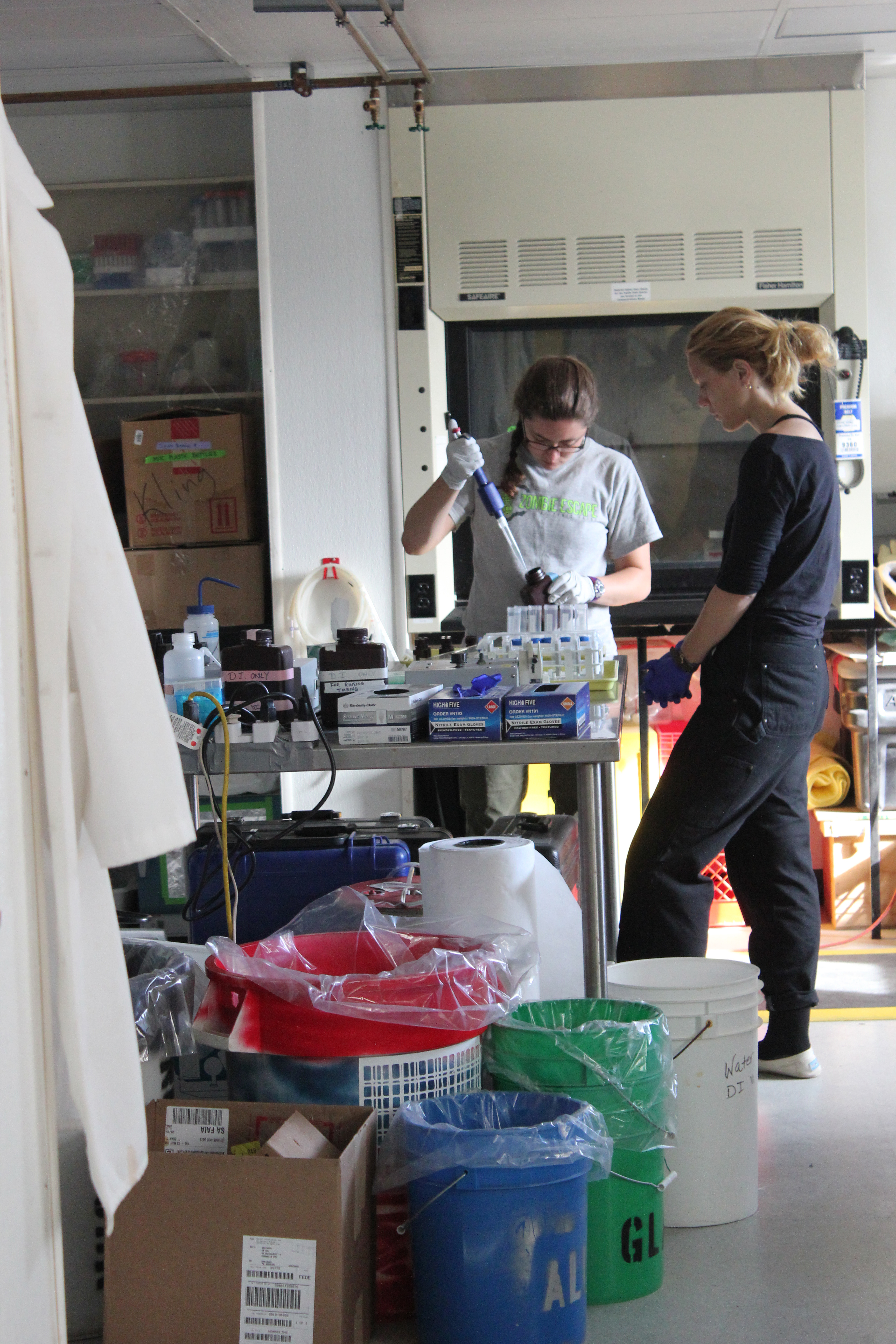 Katie Harrold and Adrianna Trusiak in the dry lab. Toolik Field Station, Alaska.