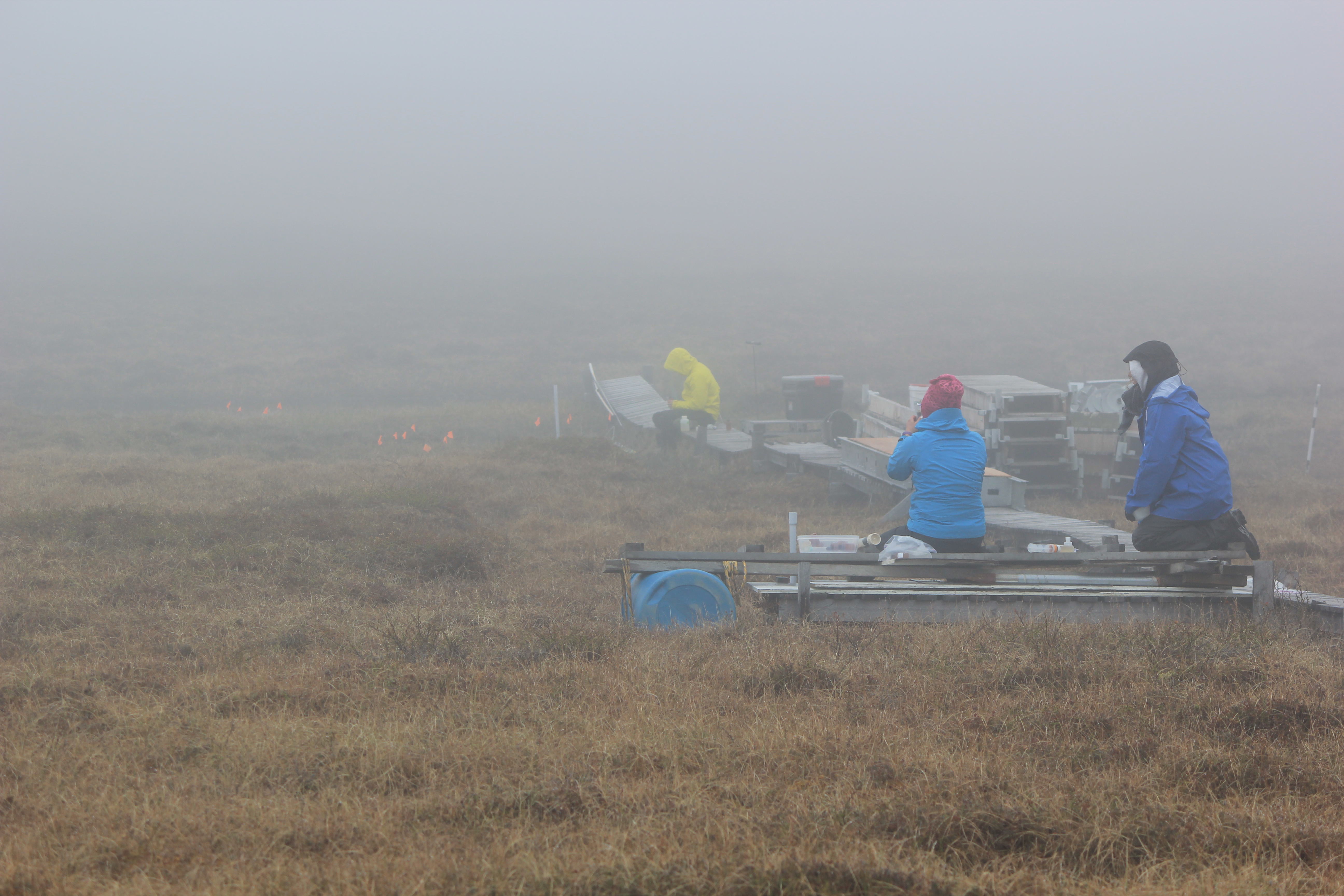 The field work is carried out despite fog and cold. Toolik Field Station, Alaska.