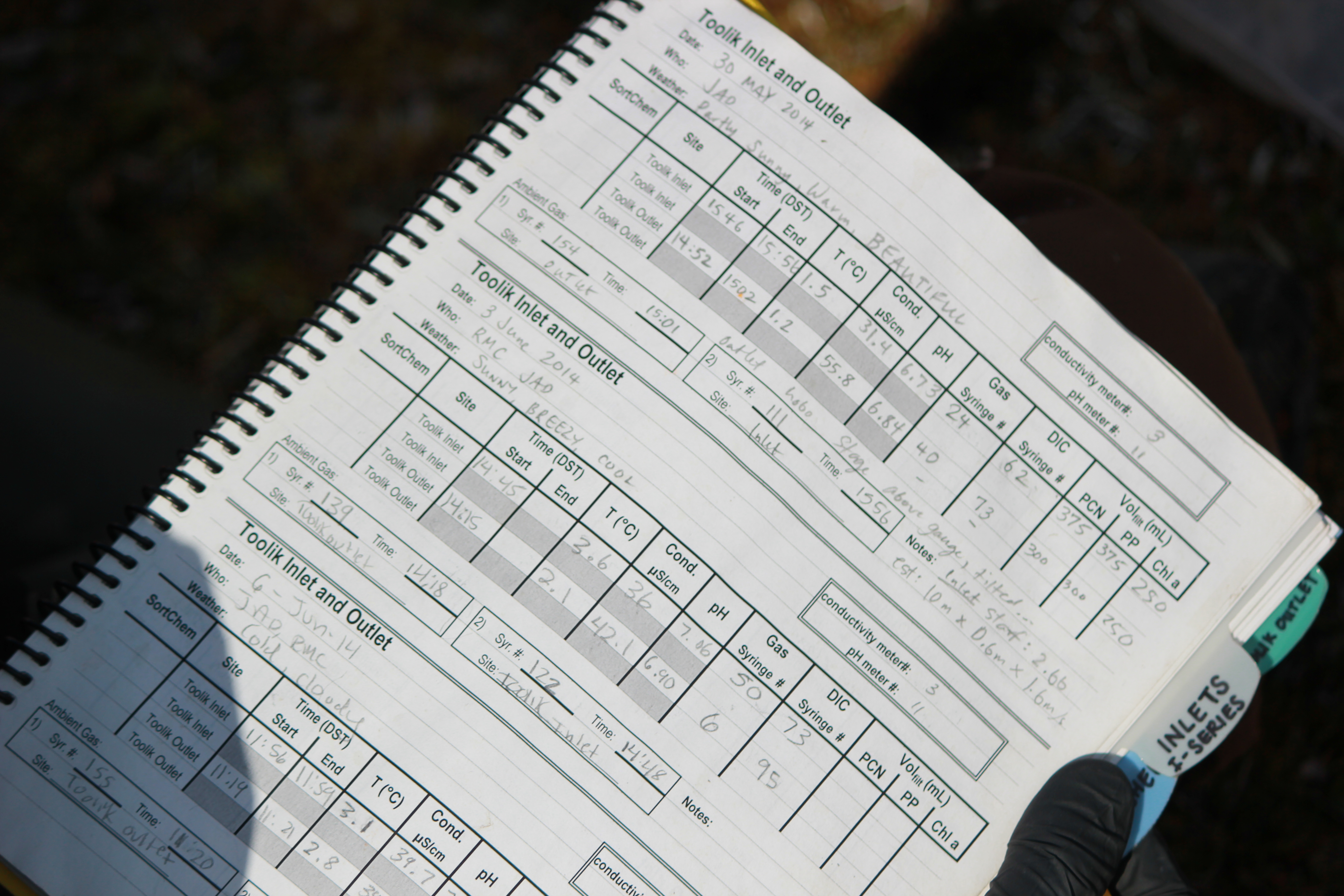 The details of a lab notebook used for field work. Toolik Field Station, Alaska.